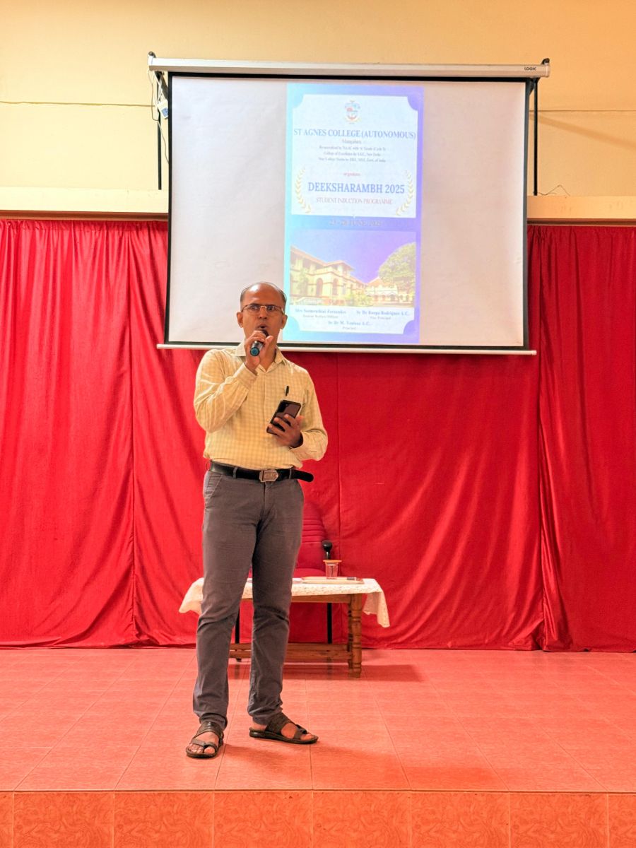 As part of the induction program, departmental orientations were conducted to familiarize students with their respective academic disciplines. These sessions introduced students to the faculty members, curriculum structure, and the various academic and co-curricular opportunities available within each department. The primary objective of these orientations was to help students make informed academic choices and to cultivate a deeper understanding and appreciation of their chosen field of study. By providing a clear overview of departmental expectations and support systems, the sessions laid a strong foundation for a successful academic journey at St Agnes College (Autonomous), Mangaluru.