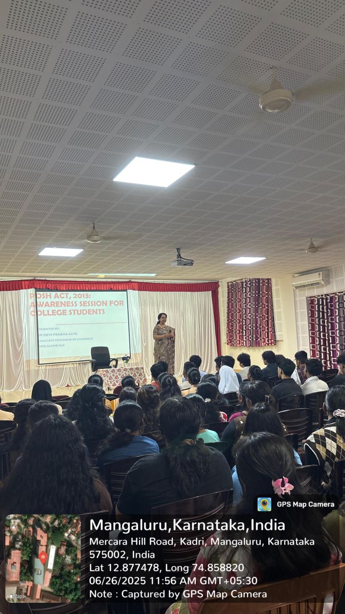 Session on “POSH Act” by Dr Devi Prabha Alva, Associate Professor, Department of Commerce