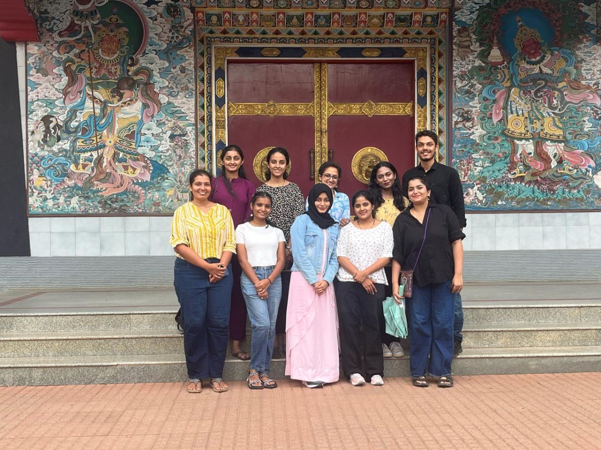 The PG Department of English, St Agnes College, (Autonomous), Mangaluru organized a three-day educational field trip to Madikeri from 8 to 10 April 2025, with the objective of enhancing students’ experiential learning through exposure to diverse cultural, environmental, and literary contexts. A group of 8 students of II MA English accompanied by 2 faculty members visited places such as Raja seat, Raja’s Tomb, Nisargadhama park and Dubare elephant camp. At the Tibetan Monastery (Namdroling Monastery) in Bylakuppe, students gained insights into Tibetan Buddhist culture, architecture, and art.