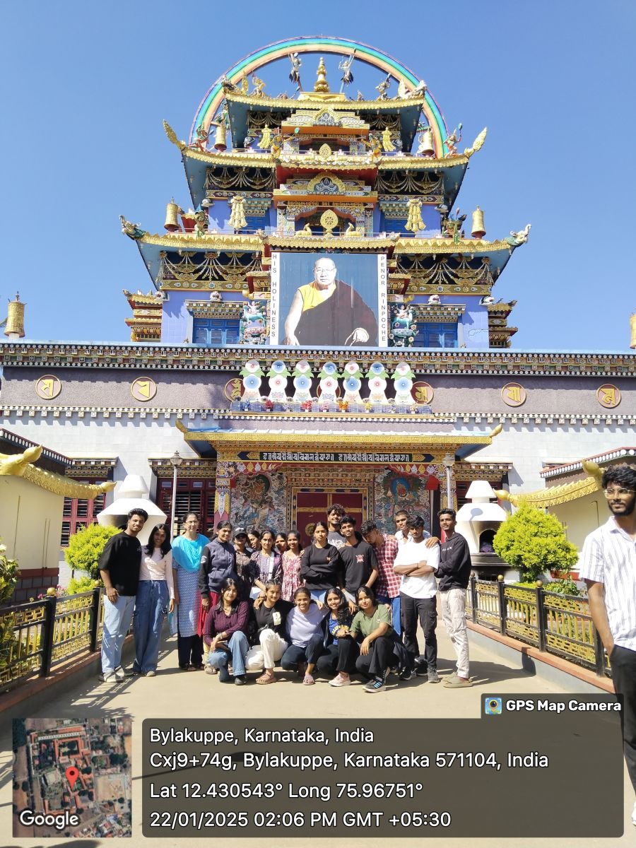 The next place visited was Kaveri Nisargadhama where most of the shopping was done by the students. After having the food, Golden Temple was visited, where students marveled to see the wonderful architecture, wall paintings, and many beautiful buildings with many art and craft which belongs to the Buddhist community. Students relaxed there for some time. Then proceed to Harangi Dam and the nearby garden.