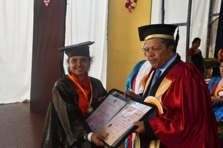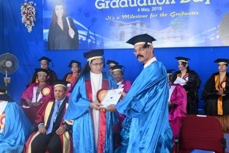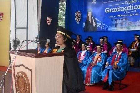 In her Presidential Address, Sr Maria Roopa A.C. briefly spoke on the glorious history of the institution founded by Mother Mary Aloysia, and sustained by efforts and sacrifices made by many others who walk on the path shown by God and the foundress; she congratulated the graduates and requested them to live by the compassion and value system inculcated in them by the college.