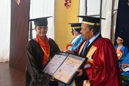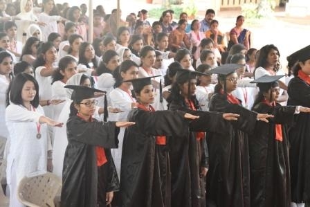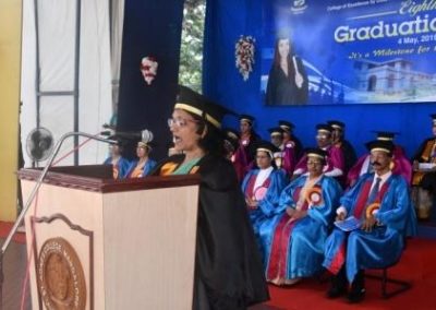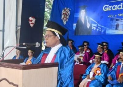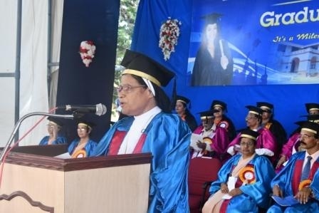 The Chief guest Dr Vinaya Hegde Chancellor NITTE ( Deemed to be University)who is an Educationist, Industrialist and Philanthrophist, in his Graduation day address congratulated the graduates on their success and wished them a bright future ahead. In his address the Chief guest laid emphasis on the mission of higher learning to maintain high standards to compete globally, and hoped that these graduates make a substantial contribution not only to themselves and their families but also to their profession, community, nation and the world at large. As someone connected with the higher educational landscape of Mangalore, he wanted them to realise that they have a great responsibility, being an Alumna of a College like St. Agnes. Being accredited as an “A+” Grade College in the fourth Cycle of accreditation by NAAC, having been declared as a College of Excellence by UGC of Government of India and having been accorded the Star College Status by Department of Bio-Technology, Ministry of Science and Technology, Government of India, St. Agnes College has already set high standards in the field of higher education. Having graduated from such an institute, he advised the graduates to demonstrate by their words and deeds that they are no ordinary graduates. He also said that unlike millions of youngsters in this country, they are lucky to have this rare distinction. In spite of having more than 900 Universities and 50,000 colleges in India, hardly 30 per cent of our population between the age group of 18-23 goes for higher education. This percentage, popularly known as the Gross Enrolment Ratio (GER), ranges, anywhere between 60 to 80 percent in developed nations. The issues of quality, affordability and employability are today posing serious challenges to our higher education system. Personally he felt that academic autonomy enjoyed by Colleges like Agnes can address these issues more successfully.