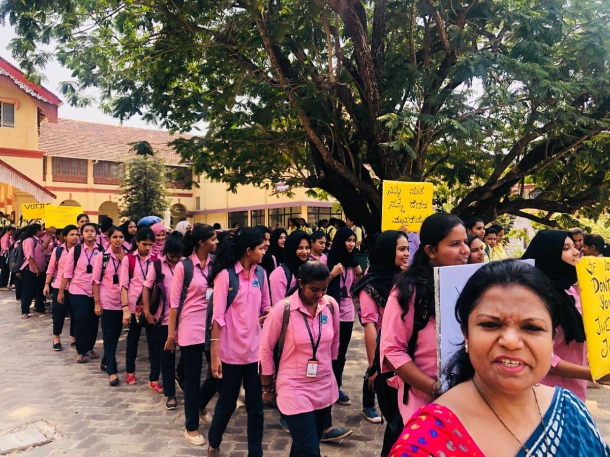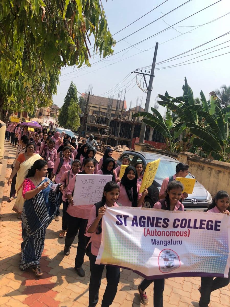 The Department of History under the banner of Electoral Literacy Club organised Voter’s (Electoral) Awareness Rally on 16 February 2019, as per the directives of District Administration and Regional Joint Director, Mangalore. The rally was flagged off by Dr. Sr. Venissa A.C the Vice Principal of St Agnes College and Mrs Ashuntha Crasta, (BLO) senior teacher at St Agnes Higher Primary School. Dr Meera, Head of Department of History (Nodal officer Electoral Literacy Club) and Dr Uday Kumar, Assistant Professor, Department of Hindi, St Agnes College led the rally. The residents of Mercara Hills were motivated to cast their vote and participate in the electoral process.