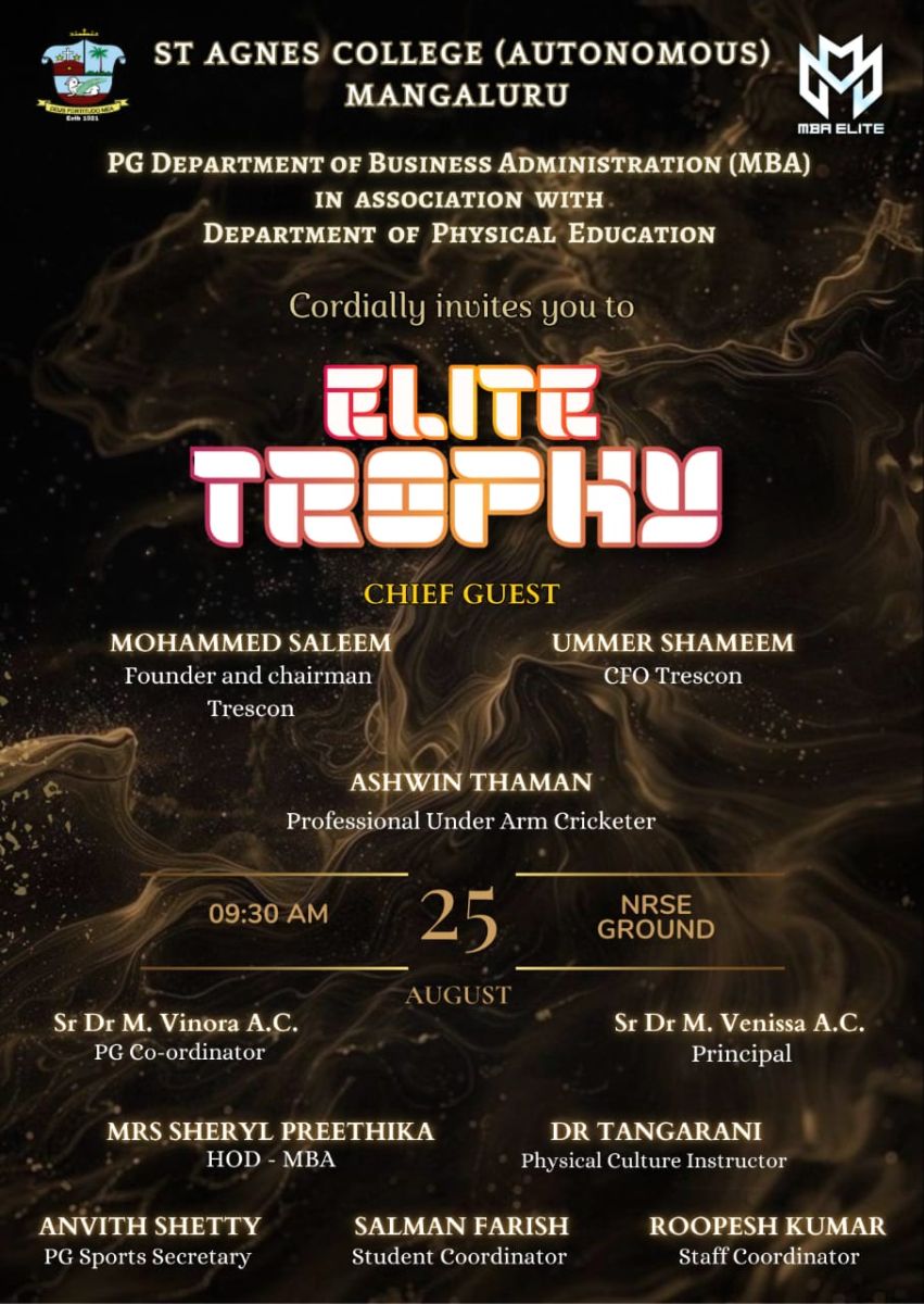 The Elite Trophy 2025 concluded on a triumphant note, marking a grand success and showcasing the MBA department’s commitment to fostering talent, teamwork, and holistic student growth beyond academics.