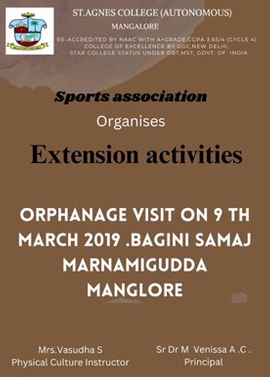 Sports Association, St Agnes College (Autonomous), Mangaluru in collaboration with Rangers and Commerce forum visited the orphanage Bagini Samaj, Marnamigudda Mangalore on 9 March 2019. Students conducted games, fun activities and entertained the children.