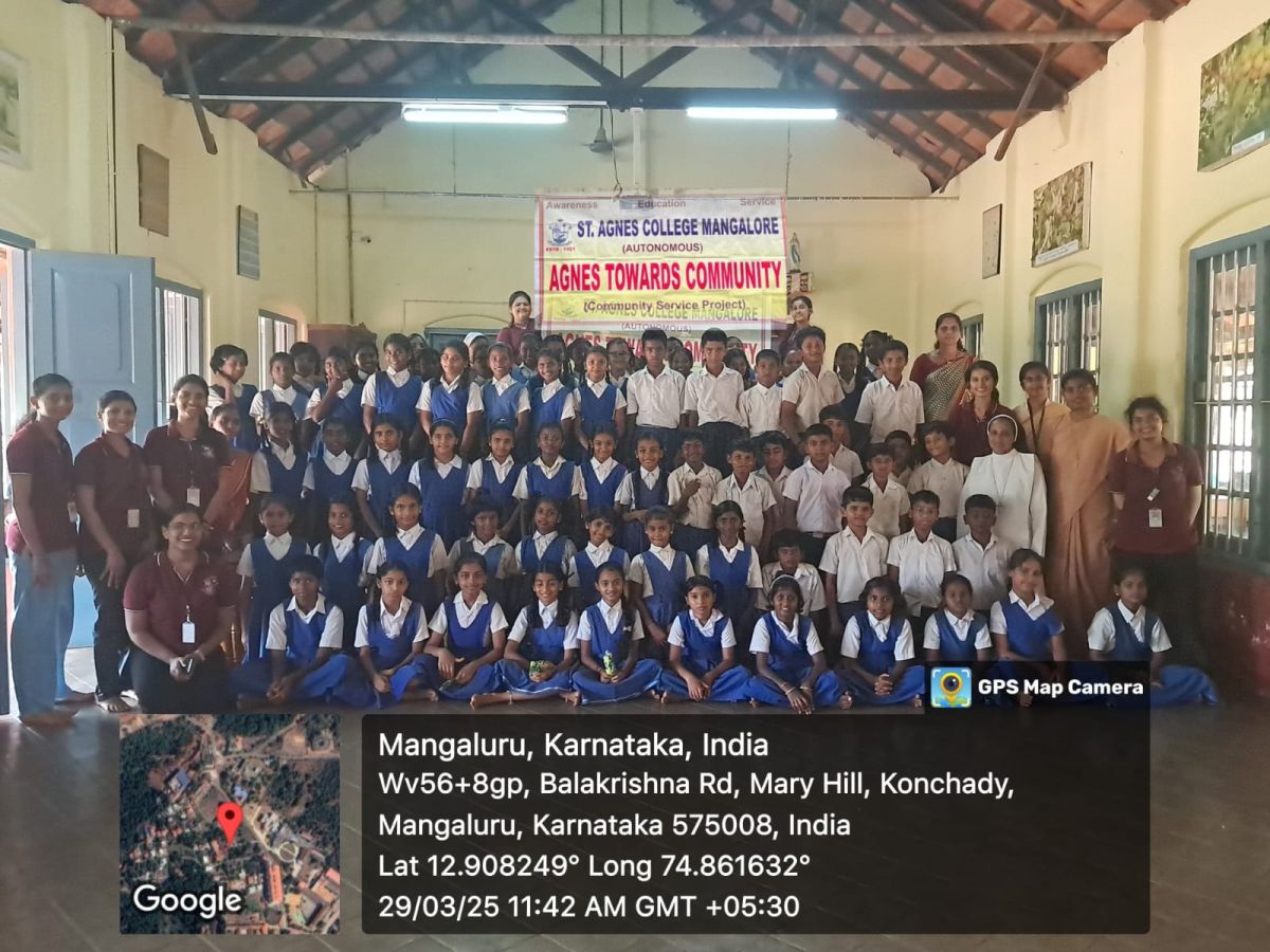 St Agnes College students, led by Sr. Evet Priya A C, planned and executed a variety of activities aimed at enhancing learning through interactive and fun methods. They demonstrated simple yet exciting science experiments, which were both informative and entertaining. These experiments provided an opportunity for the school students to understand scientific concepts in a practical and enjoyable manner.