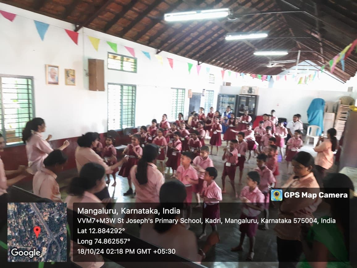 The students conducted numerous activities for the children of St Joseph’s Higher Primary School, Padav, spanning classes 1 to 7. Akishma from 3rd year B.Com.commenced the event with a warm welcome speech, followed by K R Nidhi and Sneha, who led the prayer to set a positive tone for the day’s activities.