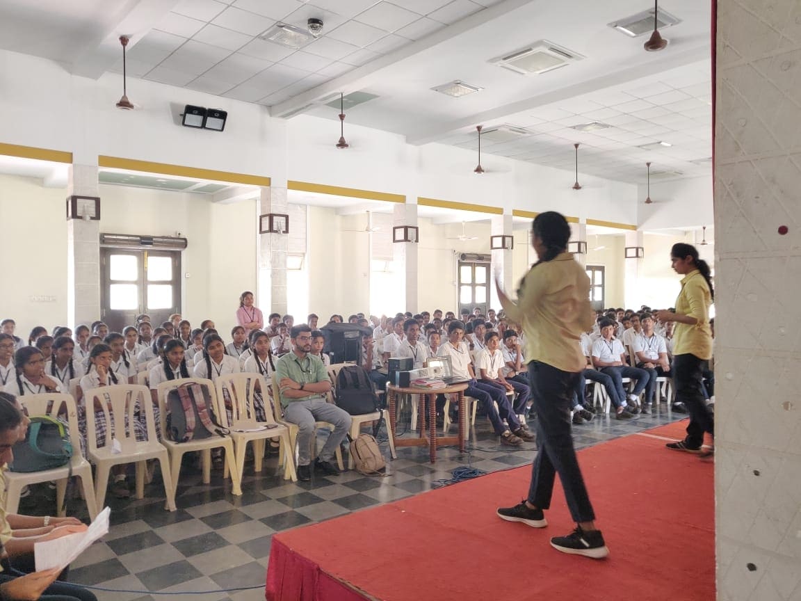 The Headmistress of St.Joseph’s English Medium High School ,Kulshekar. welcomed the group and thanked for selecting a topic which is useful for the students. The programme began with an action song led by Ms.Naazisha and group. Ms.Naazisha, Ms.Mirfath, Ms.Ashfiya, Ms.Shibani gave a presentation on Effects of Social Media. A skit was enacted by Ms.Amna, Ms.Muskaan , Ms.Hiba, Ms.Nilofer and Ms.Shibani on the topic “Cyber Crime”. Games were conducted after the session and winners were rewarded. The extension activity was successful and blissful; all the students gave a positive feedback and enjoyed the programme. The program was concluded by Mr.Elson Dsouza, Asst.Professor Dept. of Business Administration, by giving a message on Peer Pressure and how to overcome it.