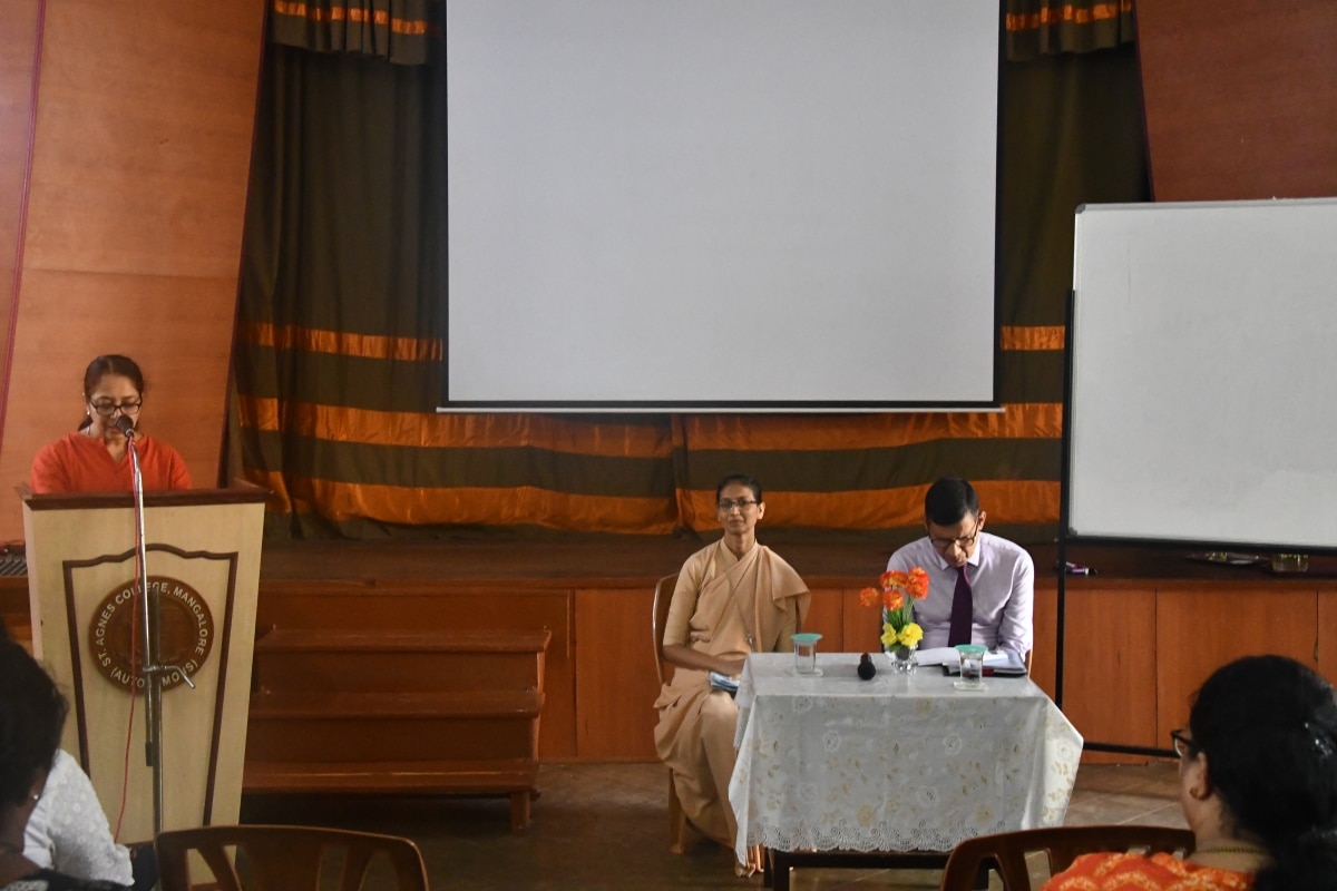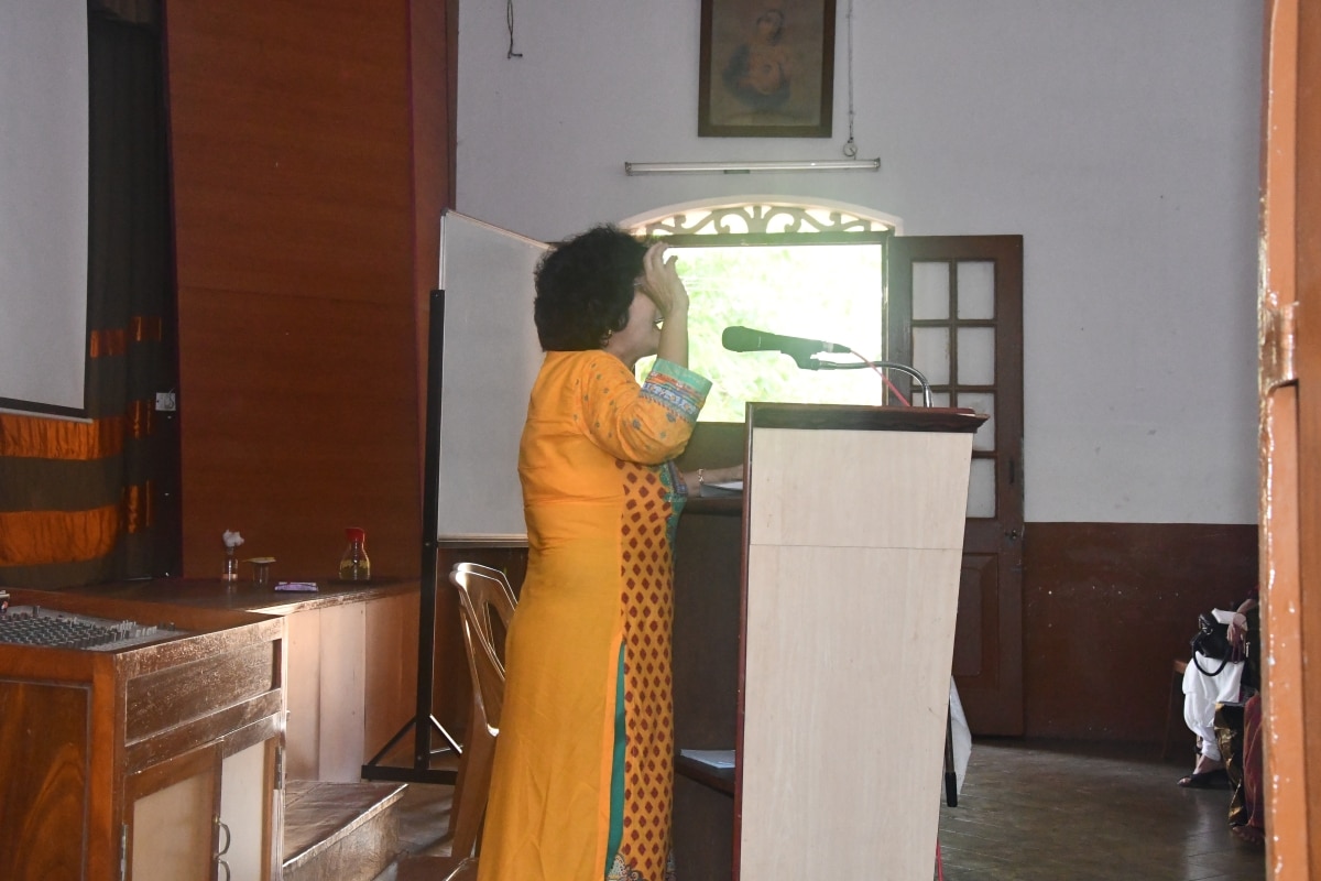 The next session was taken up by Dr Geralyn Pinto on the topic Communication skills. She said that to improve the knowledge of grammar and language one should read the standard newspaper and articles. There after she discussed the common errors which are normally done. For example Cope up with, discuss about, a lot many, revert back, years back, ATM machine, IFSC code, basic necessity, compete with each other, close scrutiny, debate contest and so on. She also emphasised that if a subject is singular, its verb must also be singular, if a subject is plural, and its verb must also be plural. The session was concluded by an inspirational story titled “A Gift from the Past” which focussed on developing your talents.