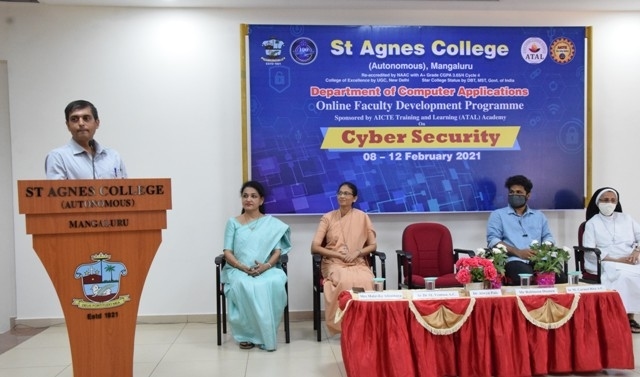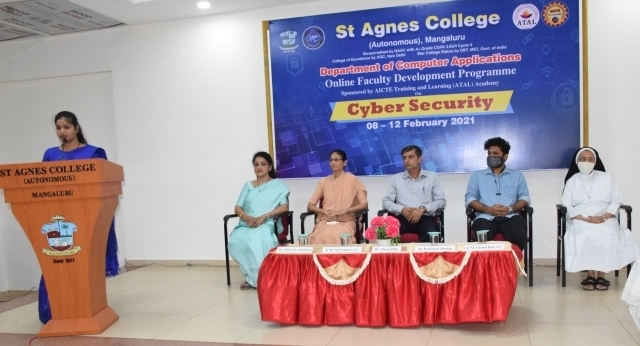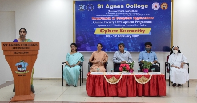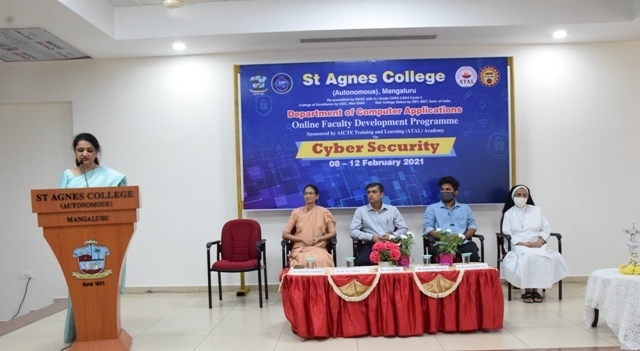 The Online Faculty Development Programme on Cyber Security from 8 to 12 February 2021, sponsored by AICTE Training and Learning (ATAL) Academy, was conducted by the Department of Computer Applications.