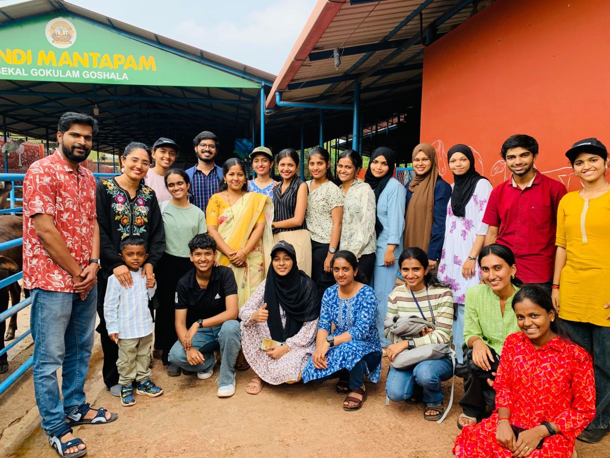 The Department of Zoology organized an educational field visit on 22nd March 2026 to Bekal Gokulum Goshala. The visit was led by Dr. Rachana L. Alva and Dr. Rajesh T. P., along with the students of the department. The primary objective of the visit was to provide practical exposure to indigenous cattle breeds, their management, and apiculture practices. At the goshala, students were introduced to a wide variety of indigenous cow breeds including Gir, Hallikar, Baragur, Kasaragod Dwarf, Malnad Gidda, and Umblacherry. The session at the goshala was guided by Dr. Nagratha Hebbar, the owner of the facility. The facility houses around 200 indigenous cattle, all of which are maintained with a focus on conservation and sustainable farming practices. The visit emphasized the importance of preserving native breeds, which are well-adapted to local climatic conditions and possess higher disease resistance compared to exotic breeds.