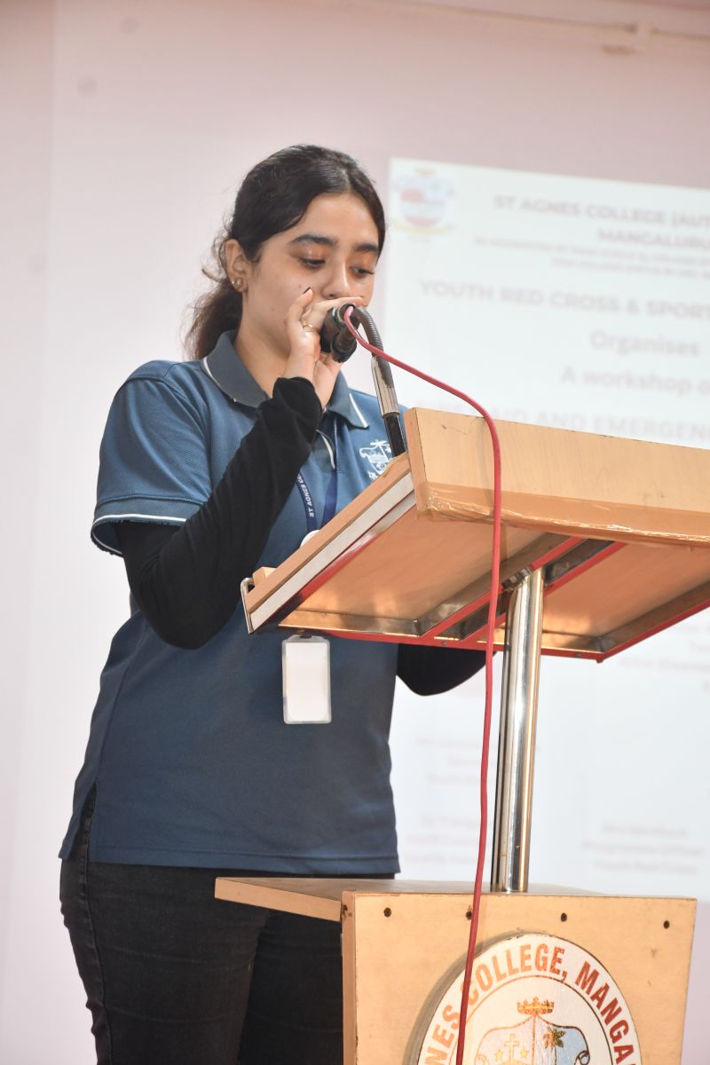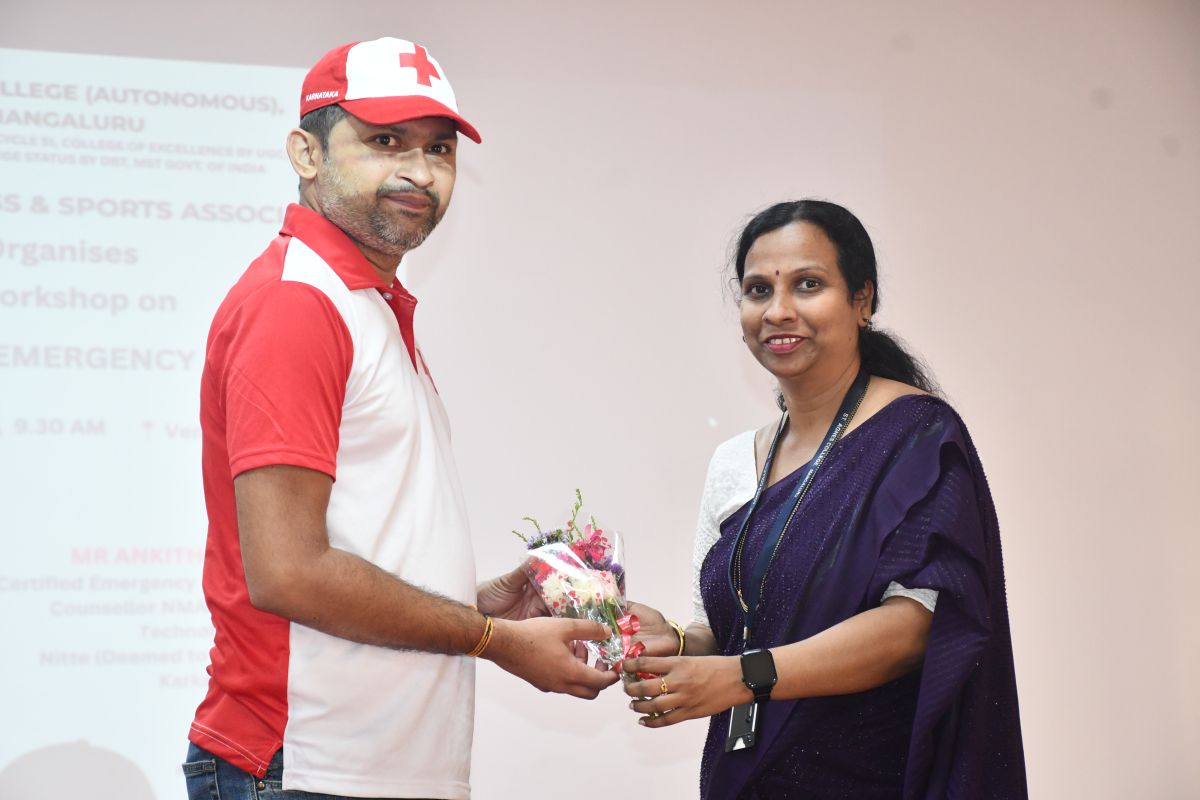 The resource person for the workshop was Mr. Ankith S. Kumar, Certified Emergency First Aid Responder and Counsellor from NMAM Institute of Technology, Nitte (Deemed to be University), Karkala. He delivered an engaging and informative session on essential first aid techniques, emergency response measures, and the importance of timely intervention during medical emergencies. The session included practical demonstrations and interactive discussions, which enhanced the participants’ understanding and practical knowledge.