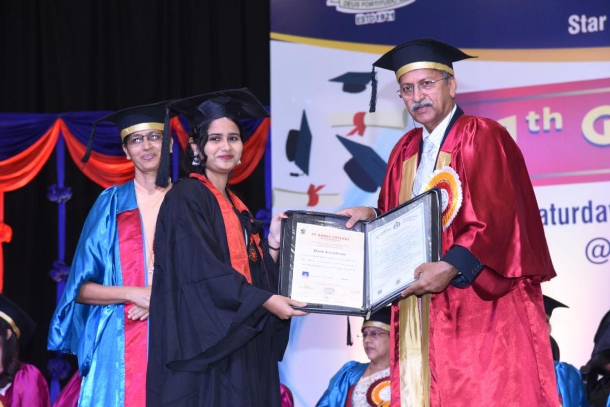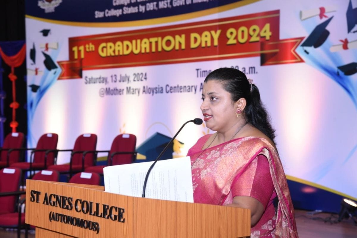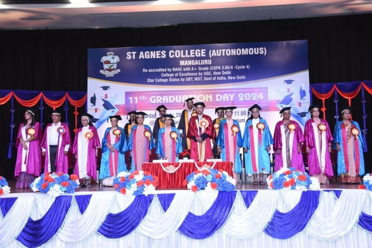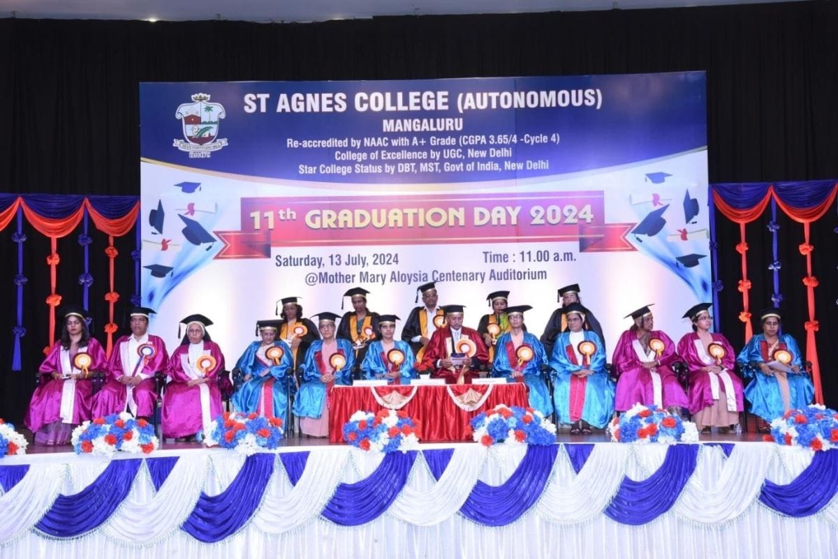 Sr. Dr. M Venissa A.C., Principal of the College administered the oath to the fresh graduates. Sr. Dr. Maria Roopa A.C., Joint Secretary of St. Agnes Institutions, Sr M. Sudeepa A.C., Secretary A.C. Educational Society, Sr. Carmel Rita A.C., Administrator graced this occasion with their presence. It was attended by the Deans of all streams, Members of various Board of Studies, Board of Examiners, Members of PTA of the College, the members of Governing Body and Academic Council of the College under Autonomy.