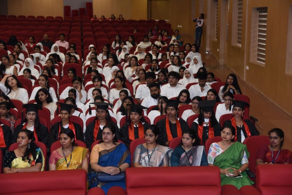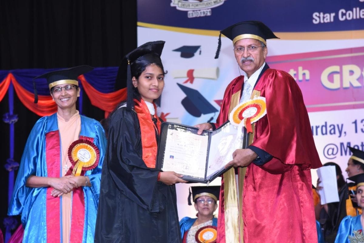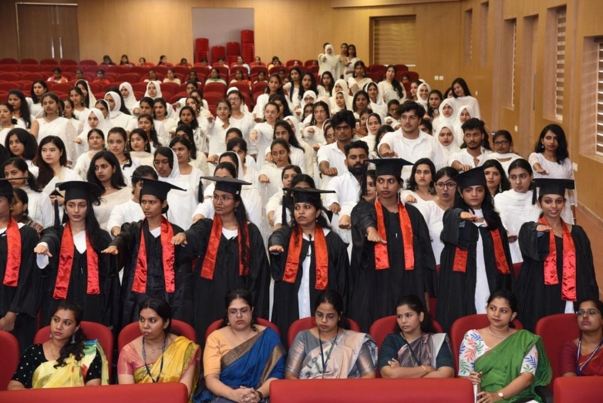 The Convocation message was delivered by Prof. Dr. M.S. Moodithaya, Hon’ble Vice Chancellor, NITTE (Deemed to be University), Mangaluru. Dr. M.S. Moodithaya, congratulated all the graduates on their achievement for gaining fulfilment on this day. In his Graduation Day Address, he said that this day is marked as a significant moment for their hard work and perseverance as they step out of the portals of their Alma Mater into this enormous world, thereby making an immense contribution to the economy of this country.