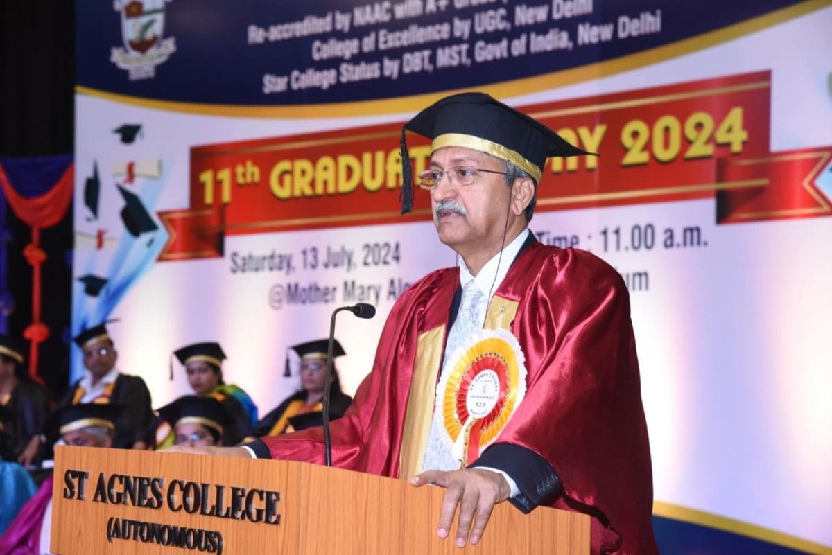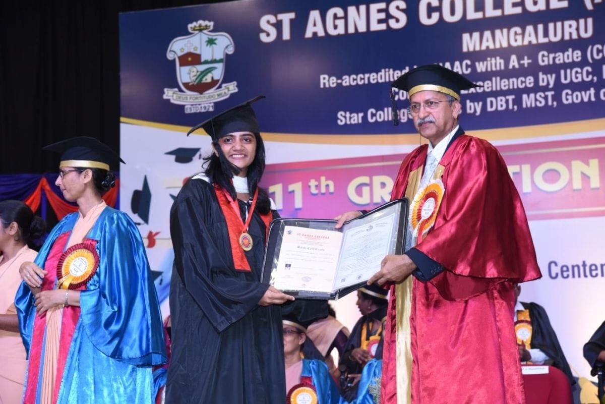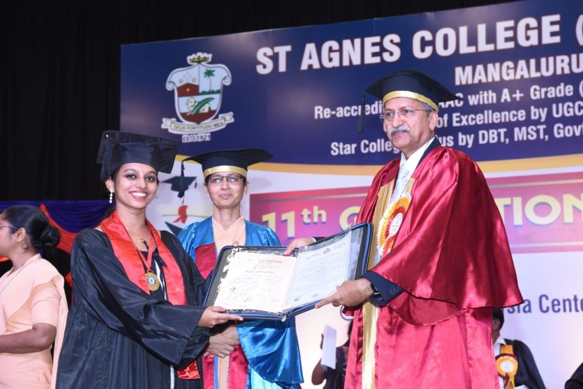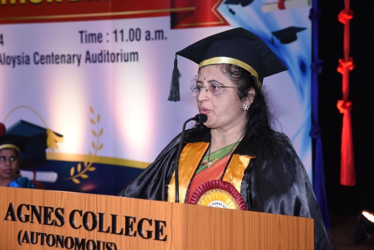 He emphasized on the fact that the graduates should be privileged to be educated in the century old prestigious institution like St Agnes College for the quality education provided to various generations. He advised the students to believe in the Kaizen concept, enhance and understand the importance of soft skills and ensure to follow their competency, potential and personality. He urged them to be an ability and credibility of being an asset to the nation, acquire an attitude for gratitude that needs to be developed in an individual’s life. He advised them to focus on three C’s, condition they live in, competency in what they do and most importantly the character throughout their journey of life.