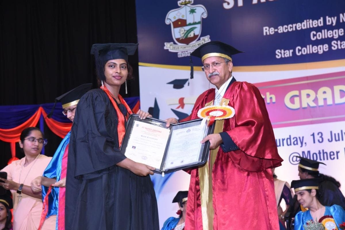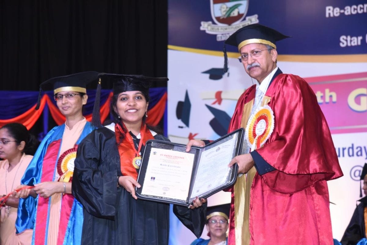 Dr. Nancy H Vaz, Controller of Examinations presented 520 graduates of which 89 were postgraduates and 431 were undergraduates, to Sr Maria Shamita A. C., the Provincial Superior, Apostolic Carmel, Karnataka Province to accept them for the Degree.