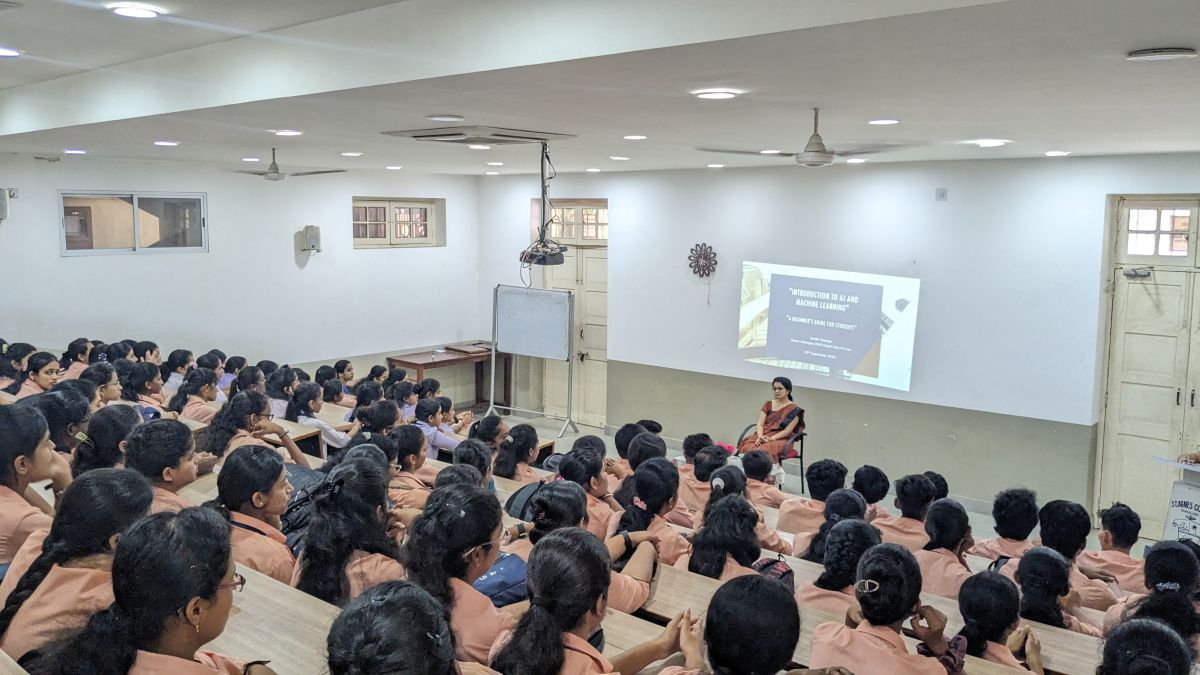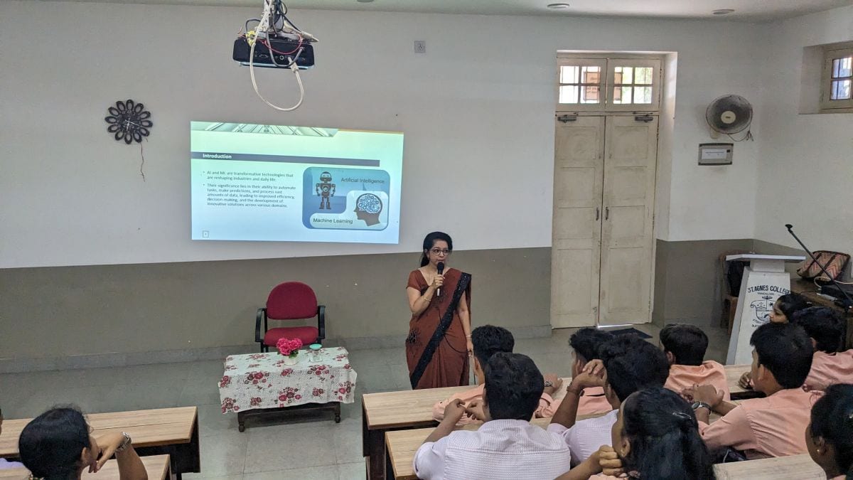 During her engaging presentation, Ms Smitha George provided a comprehensive introduction to the captivating world of AI and ML. The lecture delved into various essential topics, including the different types of AI and their versatile applications. She skilfully explored the advantages and challenges inherent in AI, shedding light on its immense potential and the hurdles it faces.