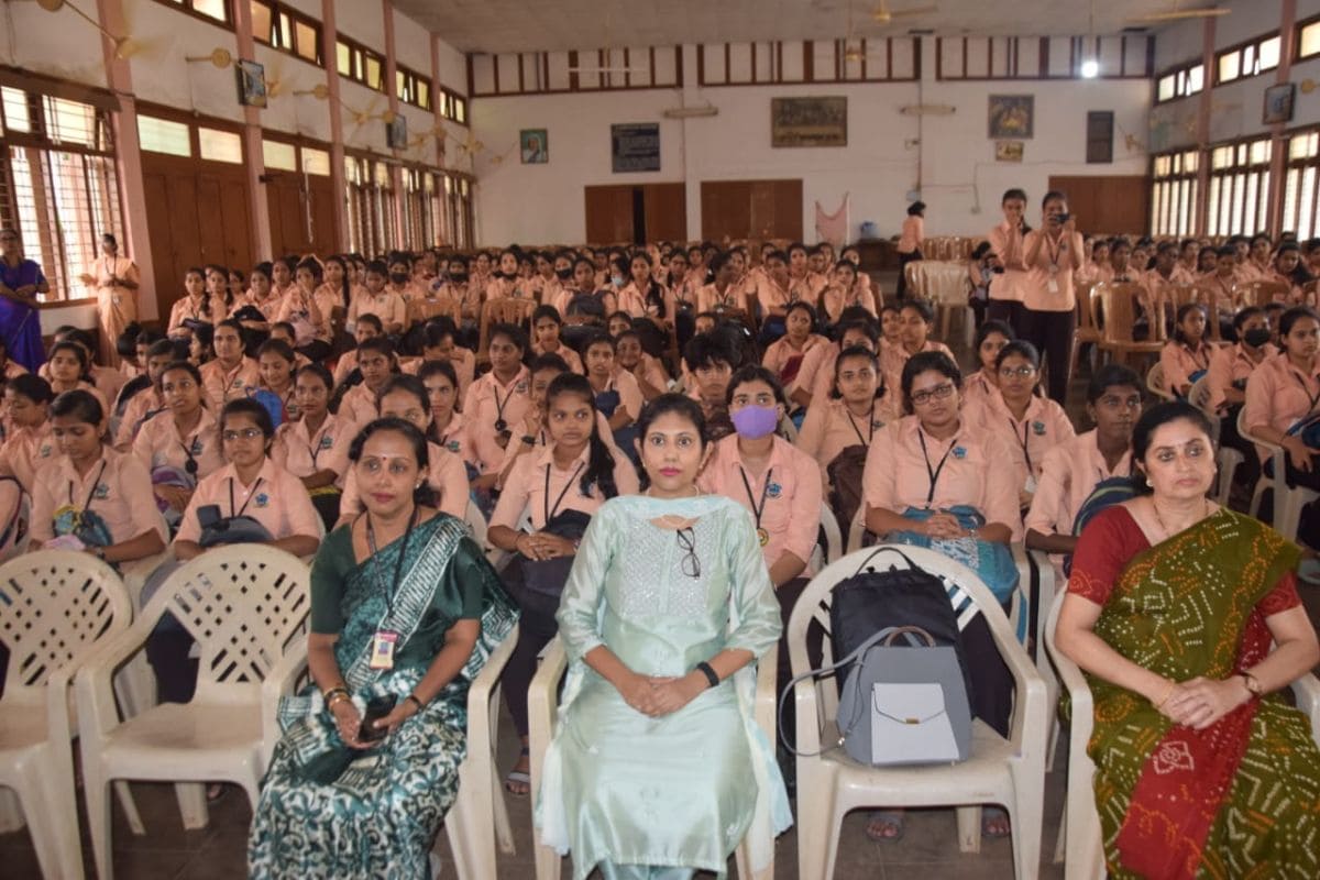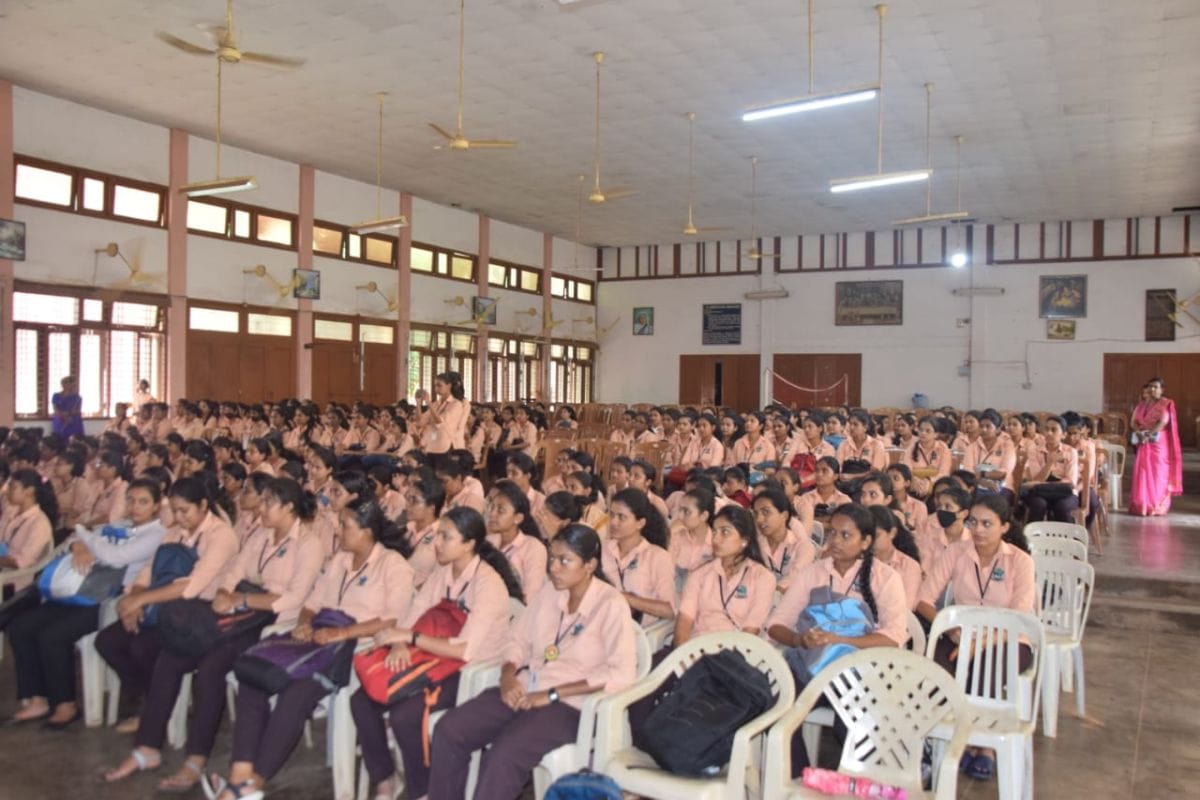 Around 400 students benefited from this programme. Leenya welcomed the gathering, Sinchana introduced the resource person, Keerthi proposed the vote of thanks and Vaishnavi compered the programme. Mrs Vidya Patali, Head, Department of Microbiology and Mrs Prajwal Rao convenor, YRC coordinated the programme. Faculty members and final year students of Commerce, Arts and BBA were present for the programme. The programme ended at 4 p.m.