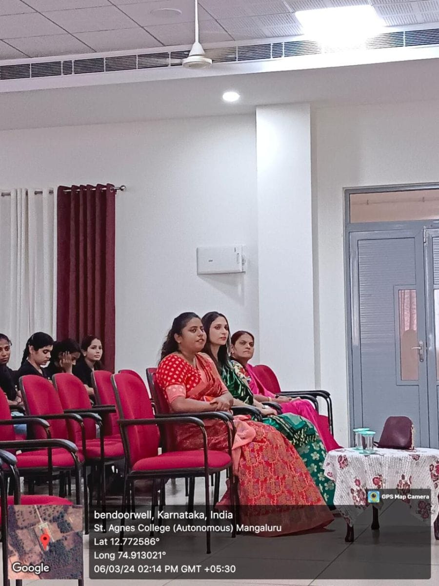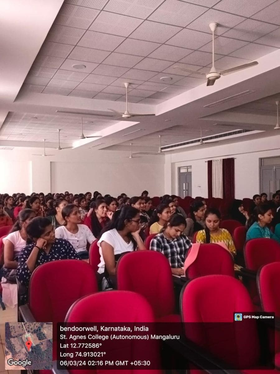 Dr Ashwini Colaco, a distinguished professor from A.J Institute of Dental Sciences, Mangaluru, graced the occasion as the esteemed resource speaker. MBA, MCA and PG Female students were beneficiaries of the programme.