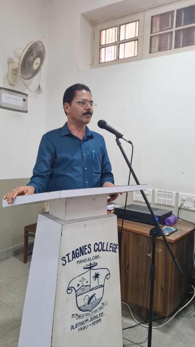 The Department of Hindi, St Agnes College (Autonomous), Mangaluru organized a Guest talk on “Rashtriya Ekta”on Saturday, 26 November 2022, to boost nation’s unity and spread awareness about Sardar Vallabhbhai Patel’s contribution to the country. To commemorate the same a talk was organized. Dr MukundPrabhu, Associate Professor,HOD of the Department of Hindi, St Aloysius College (Autonomous), Mangaluru was invited as the Chief Guest. Dr Shailaja H.G., Head, Department of Hindi welcomed the gathering. The other faculty members Dr R. Nagesh, Dr Uday Kumar B. were also present for the session.