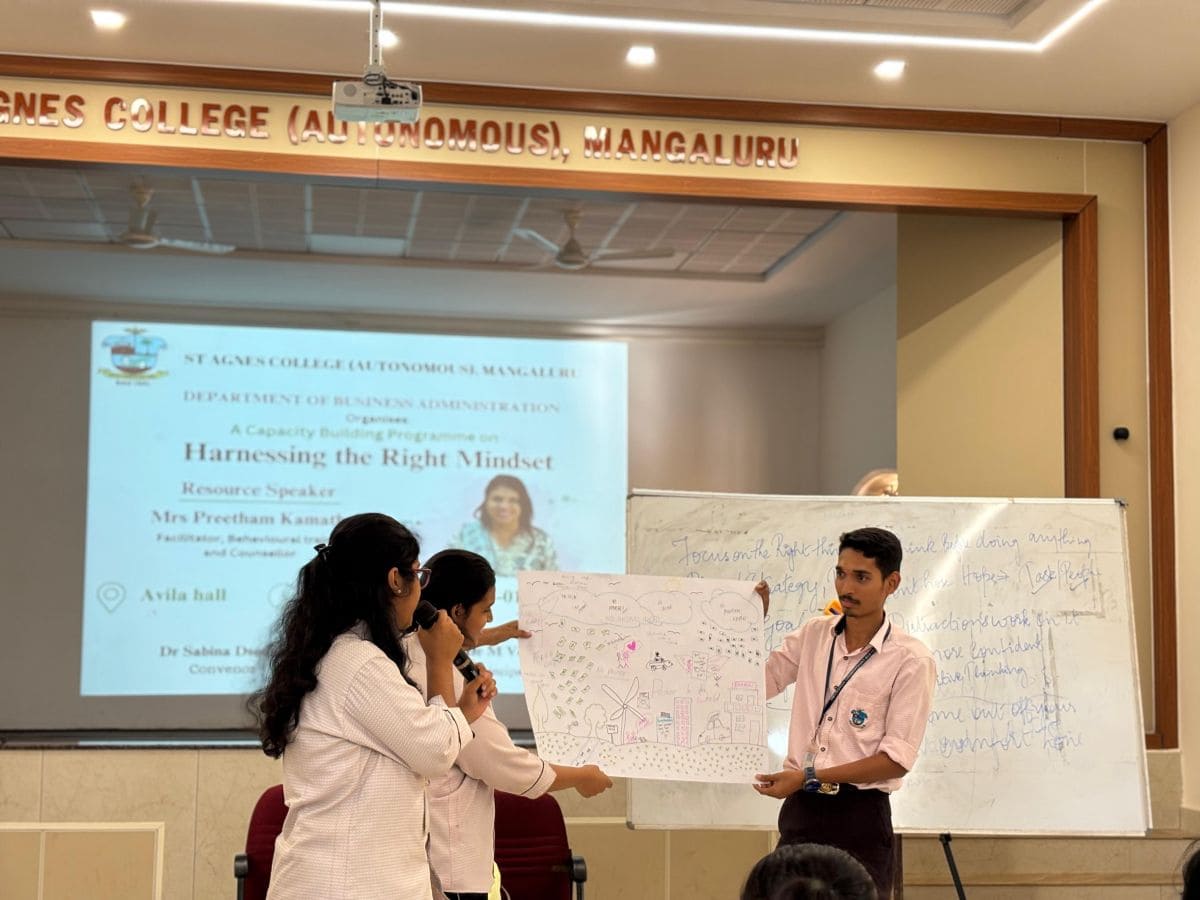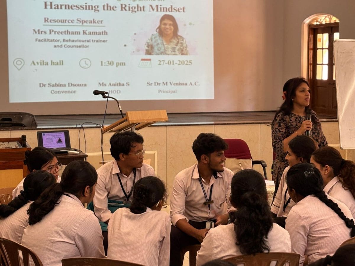 The event began with a soulful prayer song by Ms. Candice, followed by a warm welcome address delivered by Ms. Carol. The session concluded with a vote of thanks by Sameeksha from II BBA, who expressed her gratitude to the resource person, faculty members, and students for their enthusiastic participation. This impactful session left a lasting impression on the students, motivating them to cultivate a positive mindset and embrace growth as a continuous process.