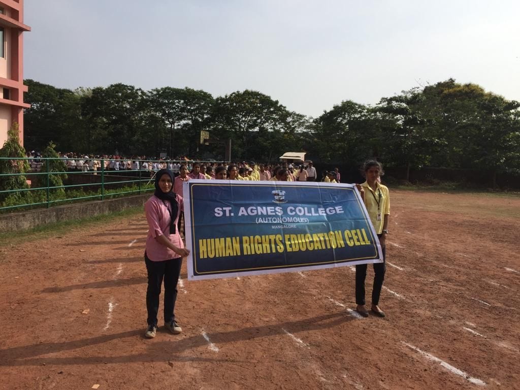 Human Rights Education Cell, St Agnes College (Autonomous), Mangaluru organized a solidarity march to mark the occasion of International Human Rights Day. Members of the Human Rights Education Cell and students of various streams joined the Solidarity March on 10 December 2018. Human Rights pledge was administered by the Convener of the HRE Cell.