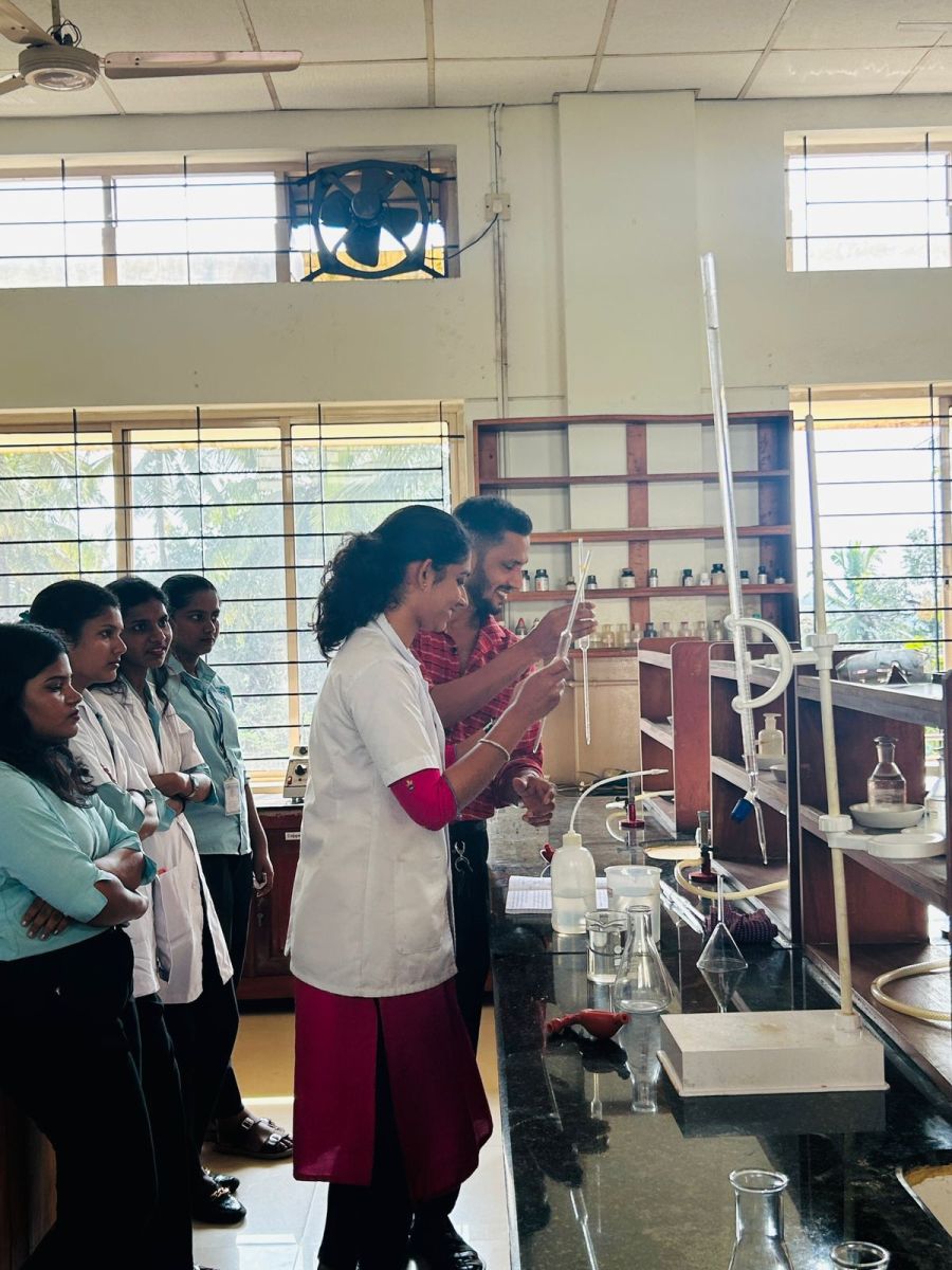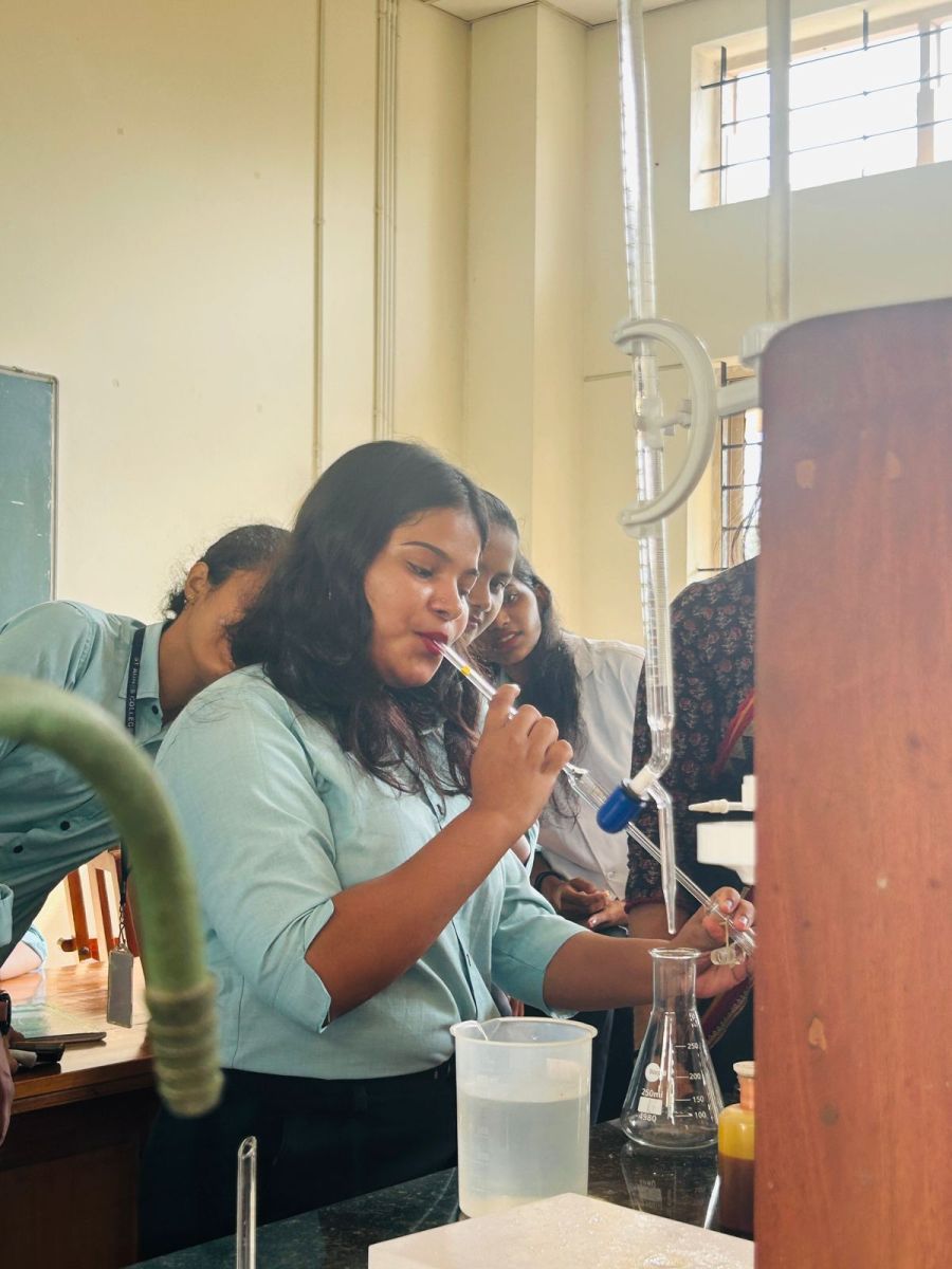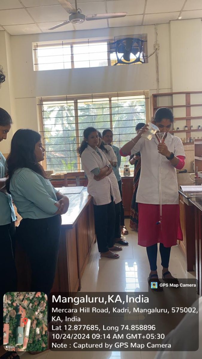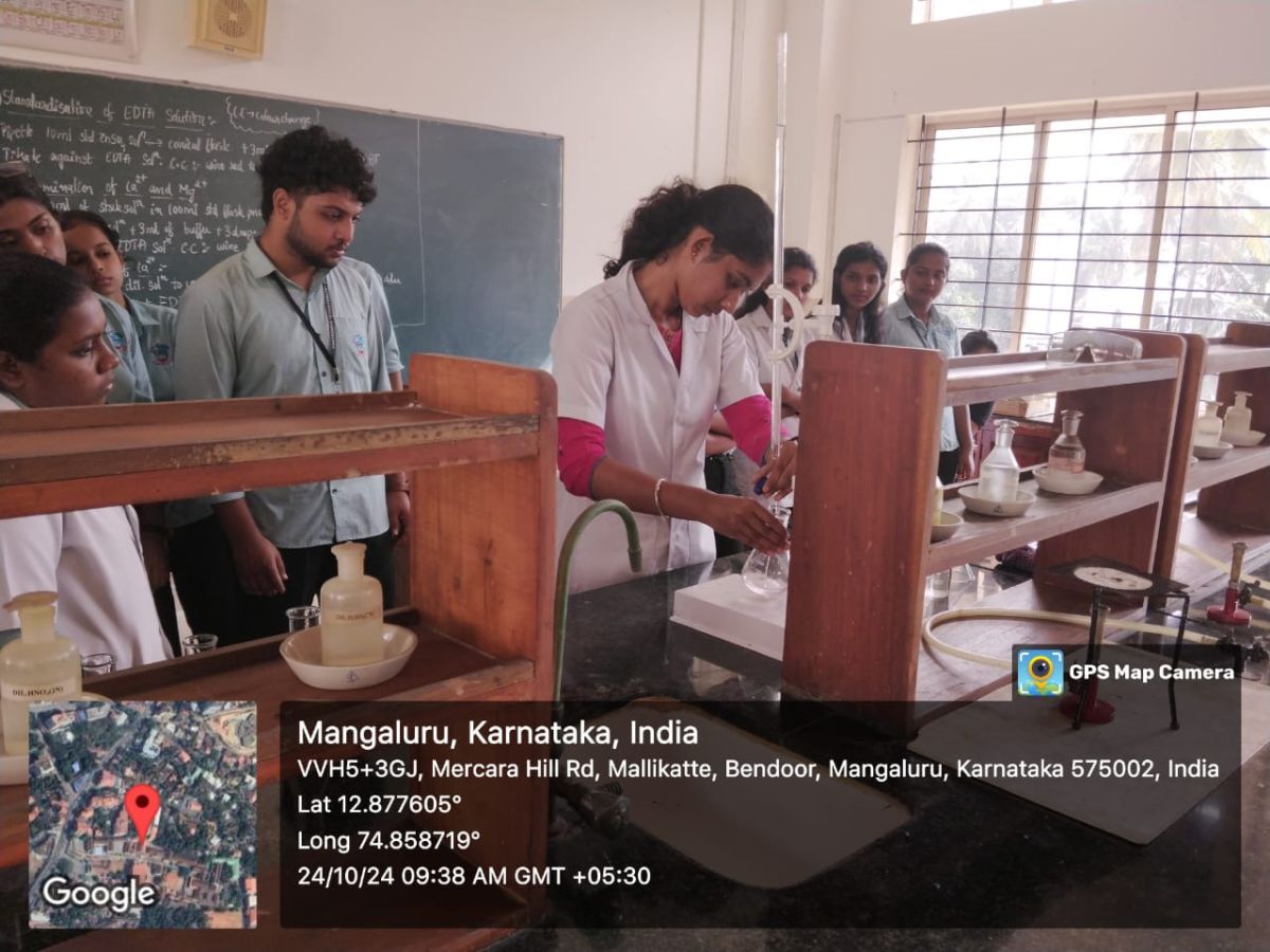 The workshop was attended by 26 PG second-year students, who actively participated in the experiment and gained hands-on experience in testing the alkalinity of water samples. Ananya Kamila from I MSc Chemistry, St Agnes College demonstrated the analysis method, which was then repeated by the students in groups. The students analysed different water samples to understand the concept of alkalinity, and their findings were discussed in a collaborative learning environment.