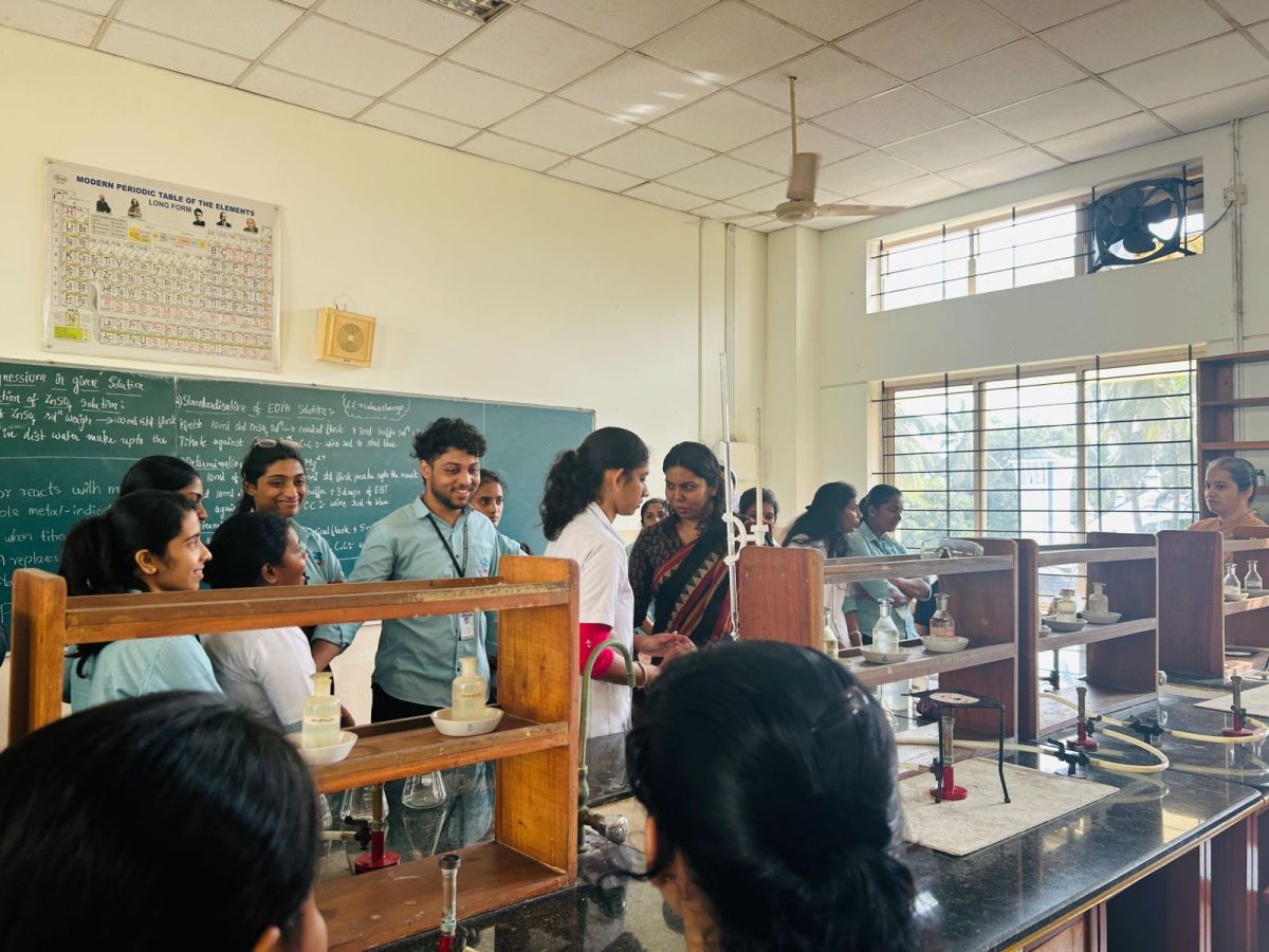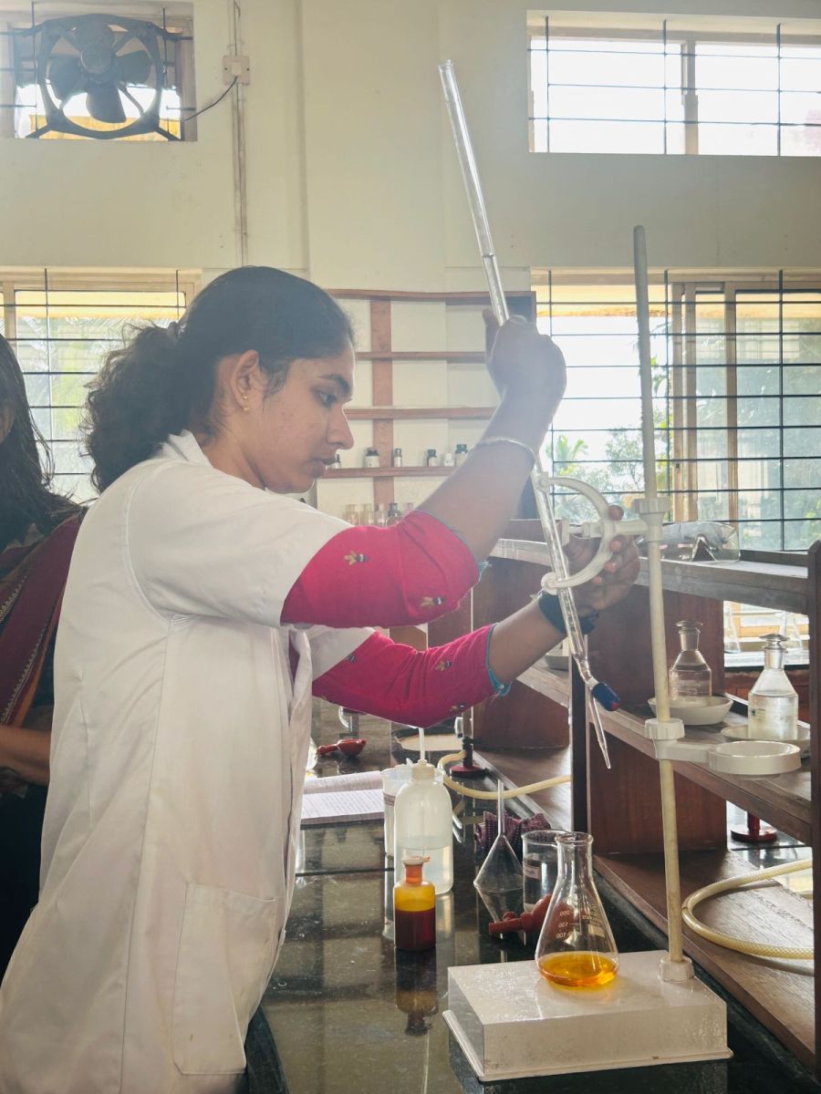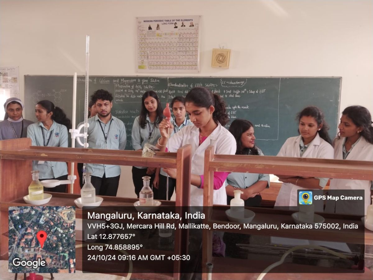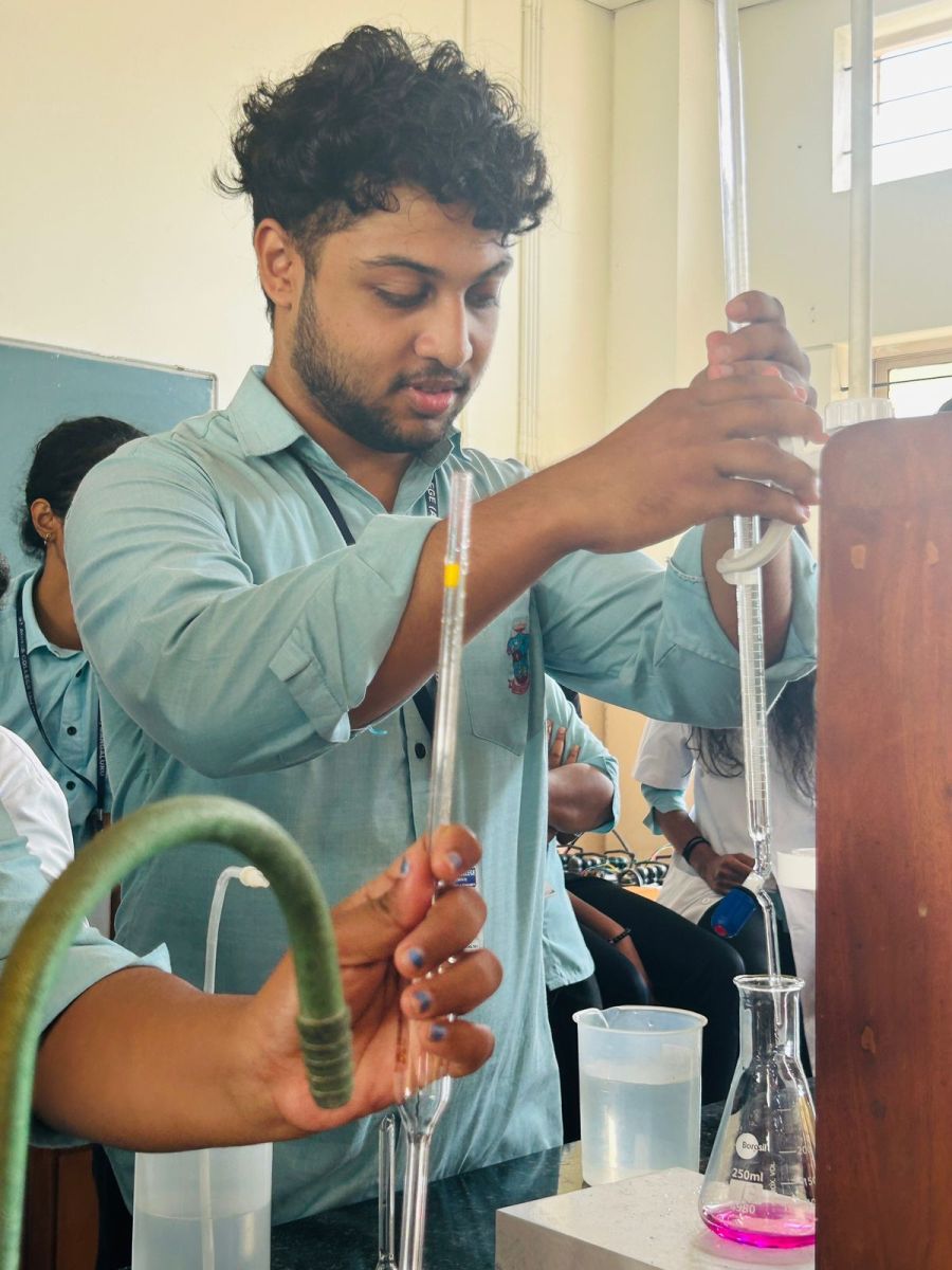 The workshop was attended by 26 PG second-year students, who actively participated in the experiment and gained hands-on experience in testing the alkalinity of water samples. Ananya Kamila from I MSc Chemistry, St Agnes College demonstrated the analysis method, which was then repeated by the students in groups. The students analysed different water samples to understand the concept of alkalinity, and their findings were discussed in a collaborative learning environment.