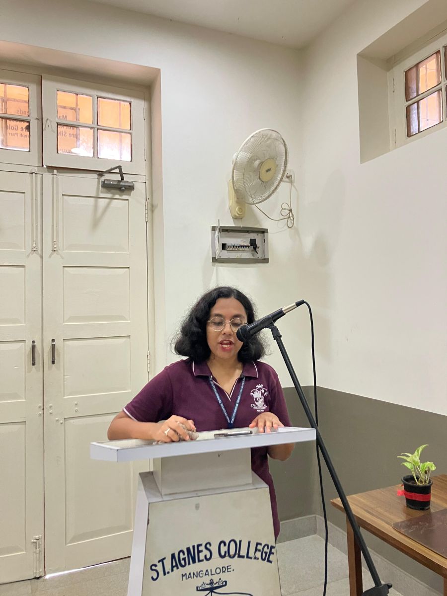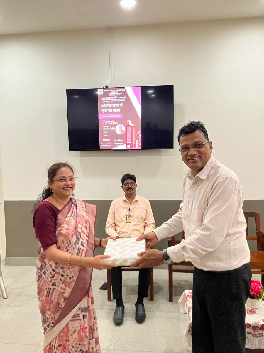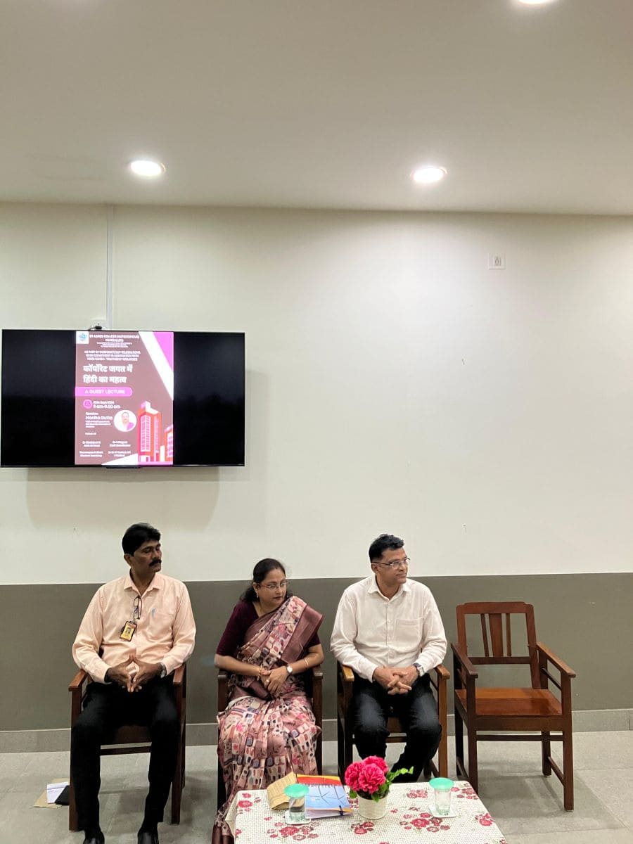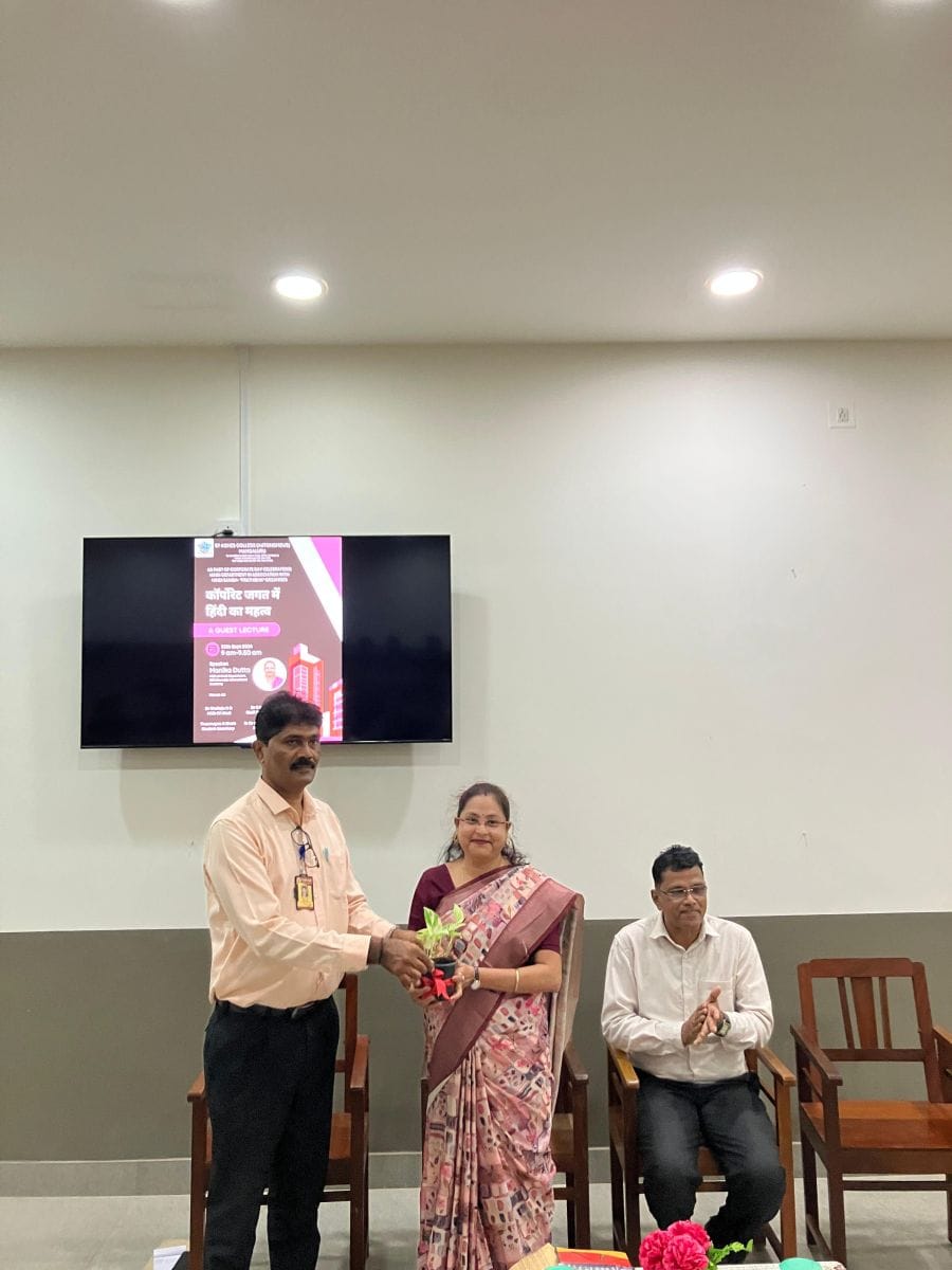 Dr Nagesh, Staff Coordinator, Dean, Hindi department and Dr Udayakumar, Professor, Hindi department were present on the occasion. Dr Udayakumar welcomed the guest with a flower pot and a memento was presented to the guest by Dr Nagesh.