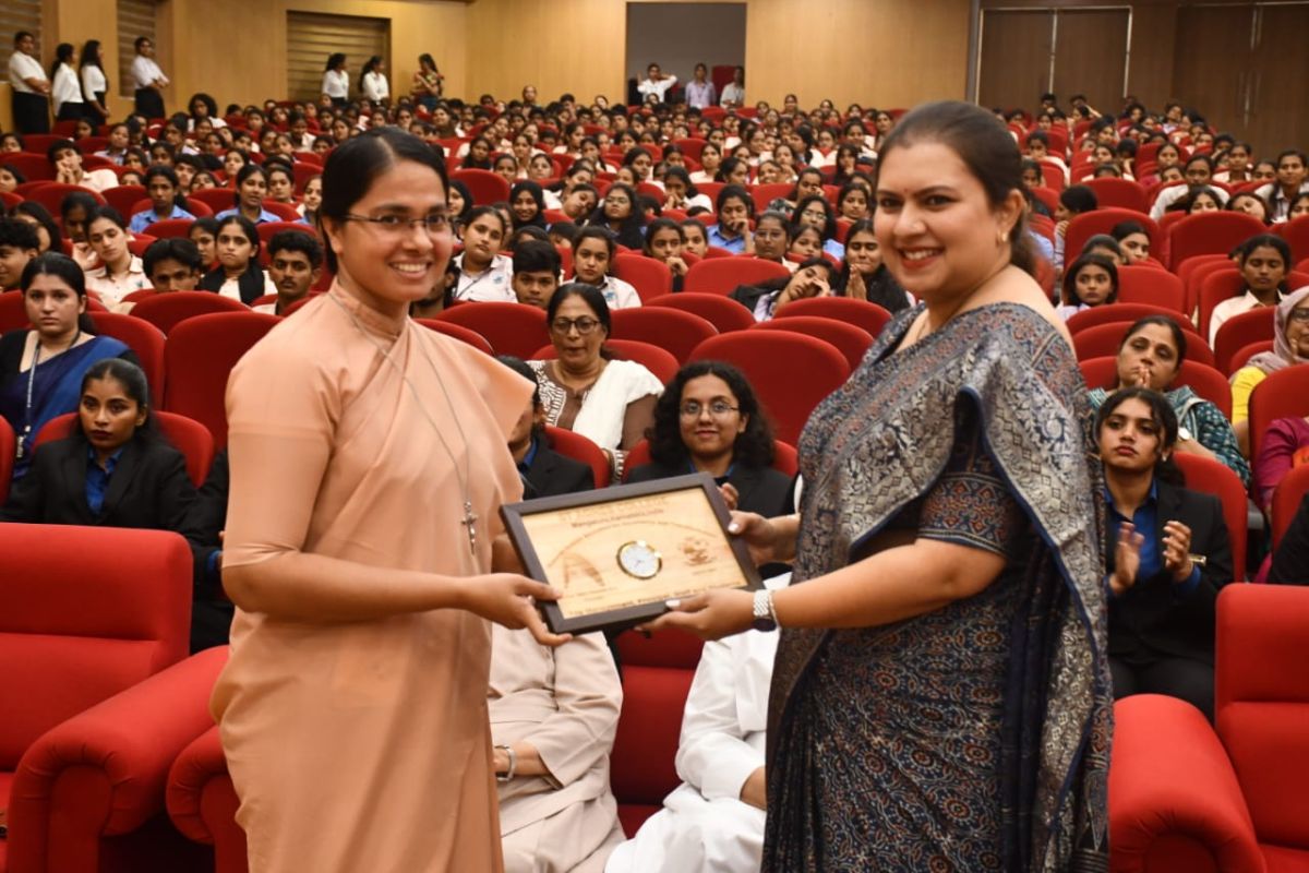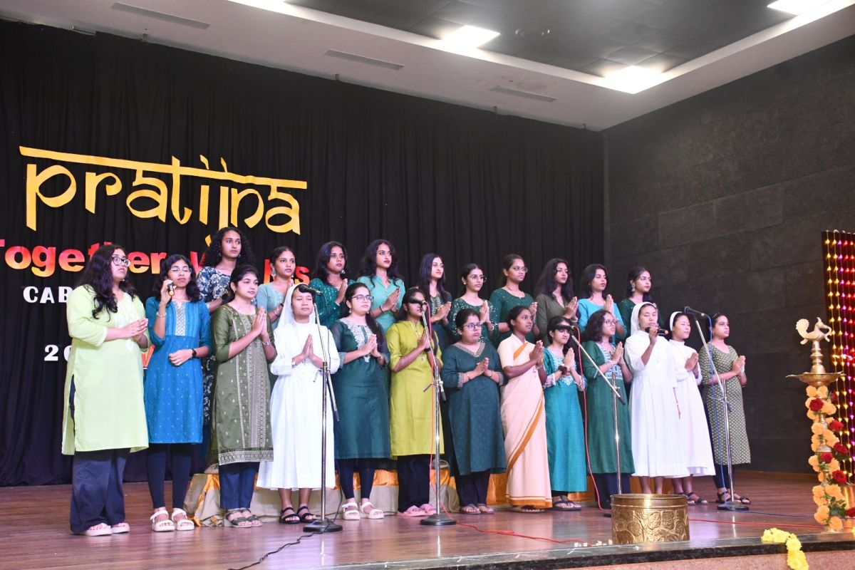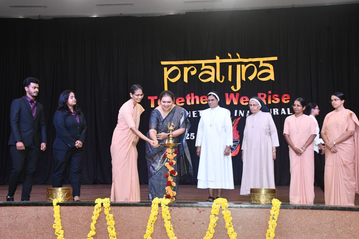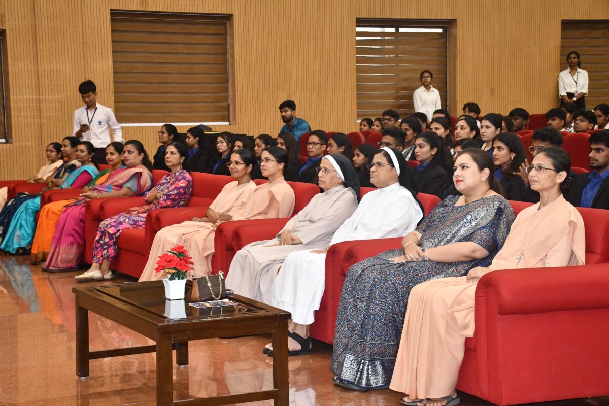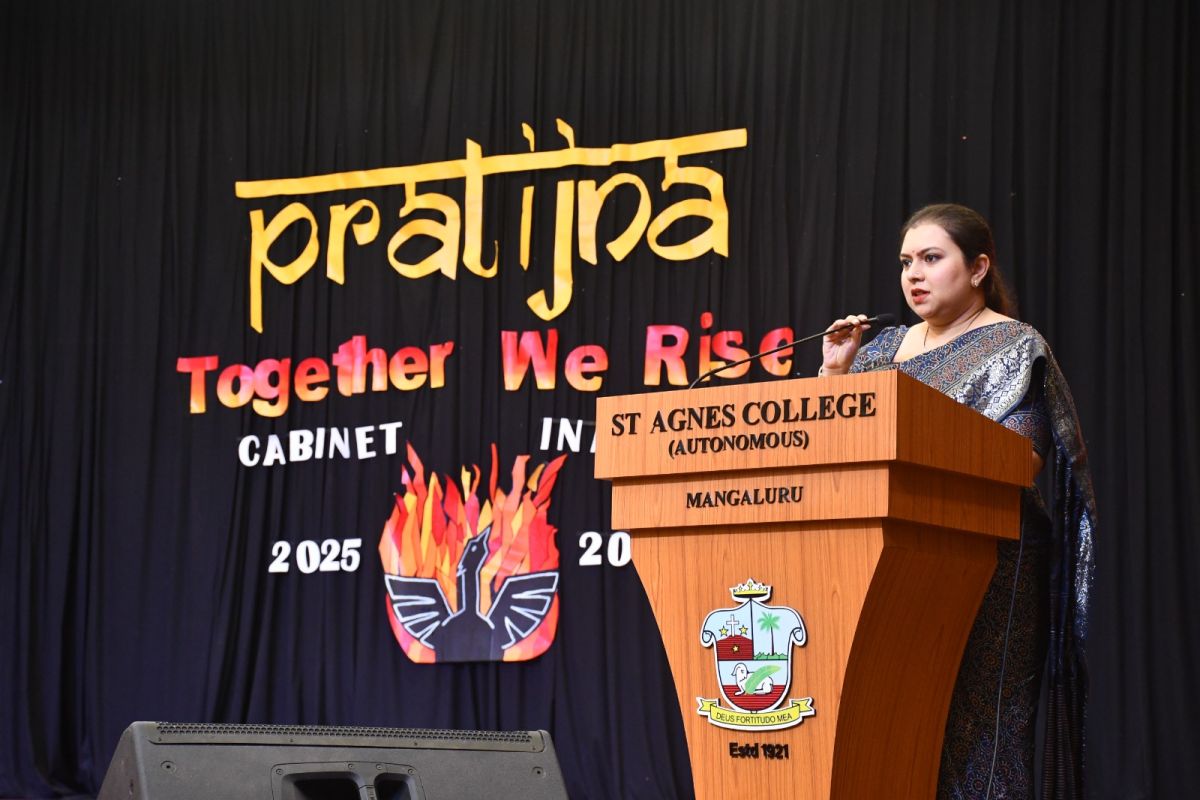 The programme began on a solemn note with an invocation by the College Choir, creating a spiritual ambience. Mrs. Malavika Shetty extended a warm welcome to the gathering and introduced the Chief Guest, Mrs. Vathika Pai—Head of Operations at Nirmala Travels, Proprietor of Vathika International Travels, former President of KCCI, and a proud alumna of St Agnes College.