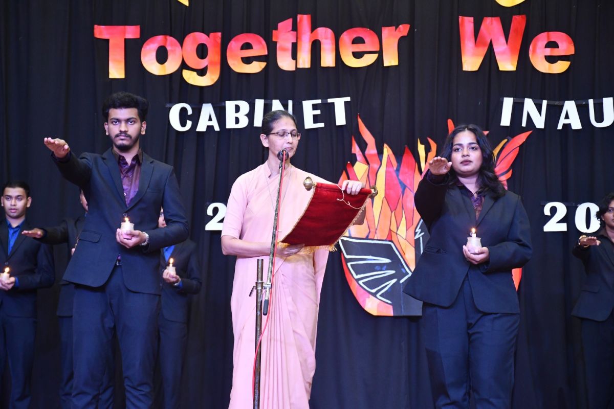 The Principal, Sr Dr M. Venissa A.C., administered the oath of office to the council members, following which she presented them with badges engraved with their respective names and portfolios. The Student Council includes Jobi Thomas John, President of the Postgraduate Council; Ananya Madhu, President of the Undergraduate Council; the General Secretary; eight Vice Presidents of the PG section; five Vice Presidents of the UG section; and twenty-one Association Secretaries.