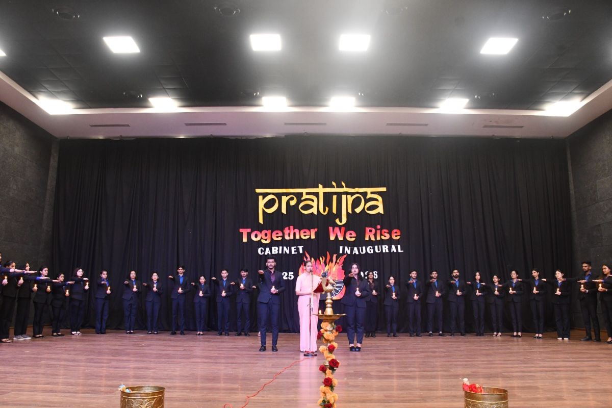 The lighting of the lamp, symbolizing enlightenment and the start of a new chapter in student leadership, followed the welcome address. The Student Council members were then formally introduced by Ms. Megha Shenoy and Ms. Jnana, Assistant Professors from the Department of Computer Applications.