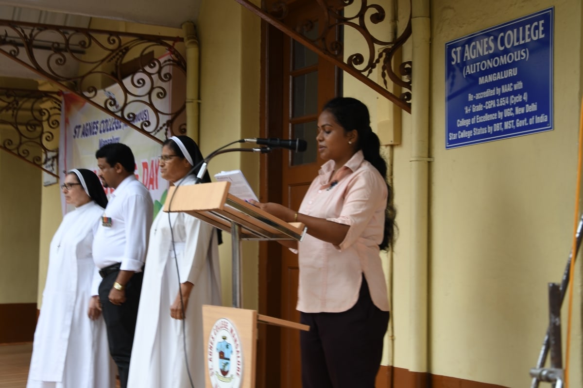 The 72nd Independence Day celebration was organised in the college by the Department of Political Science, NCC and the Rangers. Mr Venkatesh Kumpala was the chief guest.The Superior and local manager, Sr Dr Maria Roopa A C, the Principal, Sr Dr Jeswi na A C, Vice Principal, Sr Dr Venissa A C, the PG and UG staff and students as well as the students of St Agnes kannada medium primary school were present. The students of B.A awakened our patriotic spirit through some patriotic songs. The volunteers who donated blood were awarded for their contribution. The college president Ladleen Monteiro concluded the program with words of gratitude.