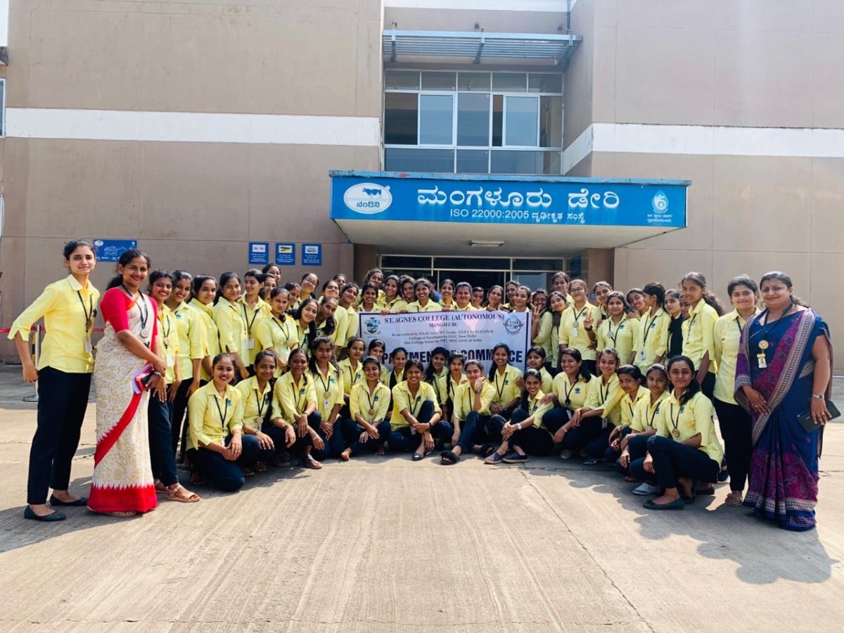The main objective of this industrial visit was to educate the students on process involved in production. Students were accompanied by the faculty of members of Commerce. The staff at the factory explained about the different products manufactured by them and also its production process, packaging unit and procedure they follow to test the milk which is bought to the factory from societies and also through BMC.