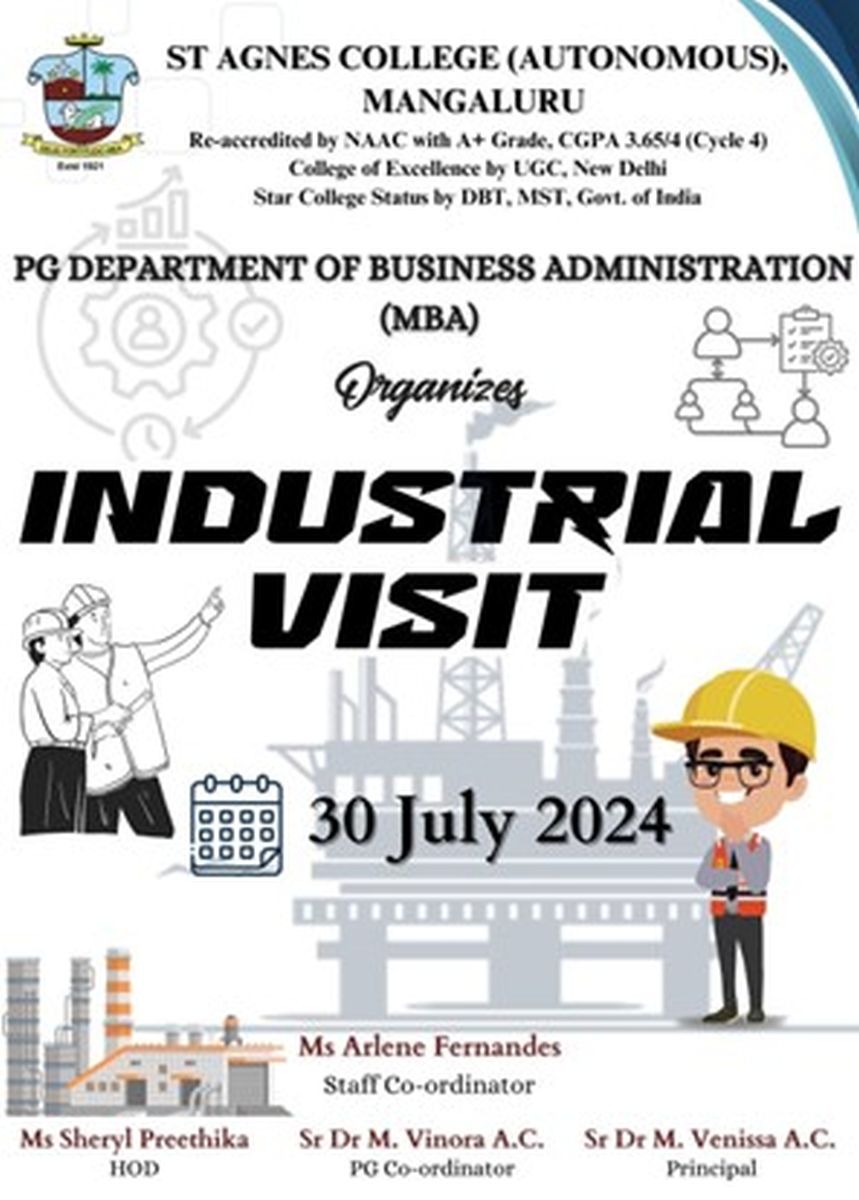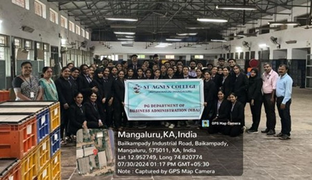 On 30th July, 2024, the first year MBA students from St. Agnes College (Autonomous), Mangaluru undertook an Industrial Visit to three prominent industries located in the Baikampady Industrial Area, Mangaluru. This visit aimed to provide students with practical exposure to the industrial environment and operational practices complementing their theoretical knowledge with real-world applications.