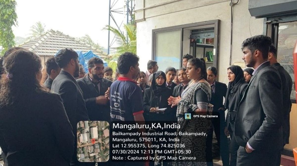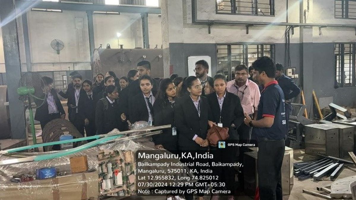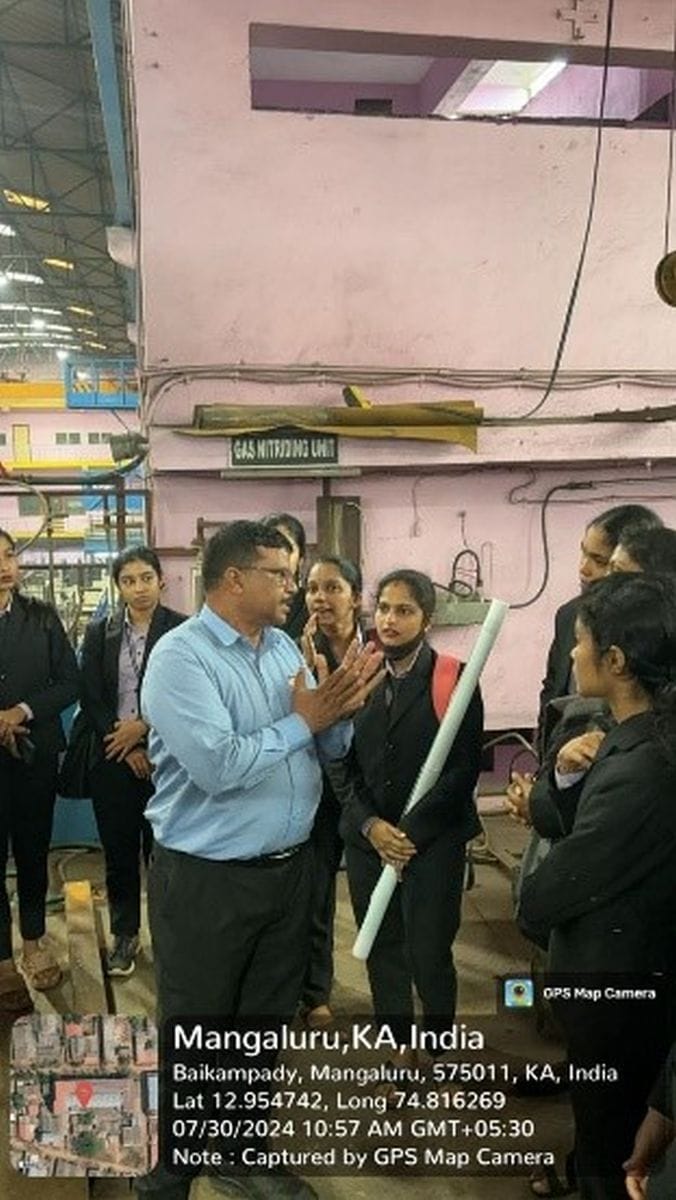 A total of 57 students participated in this educational excursion. The visit was meticulously organized and accompanied by our esteemed staff coordinators, Ms. Arlene Fernandes and Mr. Chaco PJ, who ensured a smooth and informative experience throughout the day. The journey commenced at 10:00 AM as we departed from the college premises. The industrial area of Baikampady, Mangaluru, known for its diverse manufacturing units served as an ideal location for our academic exploration. The visit concluded with our return to the college at 4:00 PM.