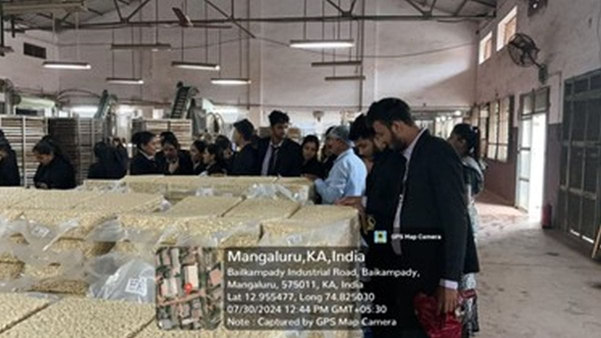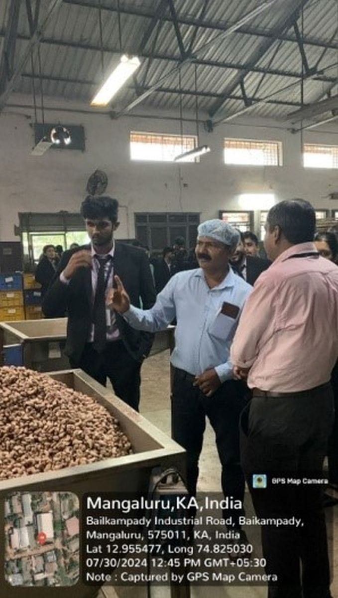 Students observed each stage of manufacturing which gave valuable insight to understand modern technologies, hands on experience, lean manufacturing principles and safety protocols that company follows. They also gained information regarding entire production process from raw cashew nut arrival to final packaging and insights into the various stages involved including shelling. roasting, grading and packaging.