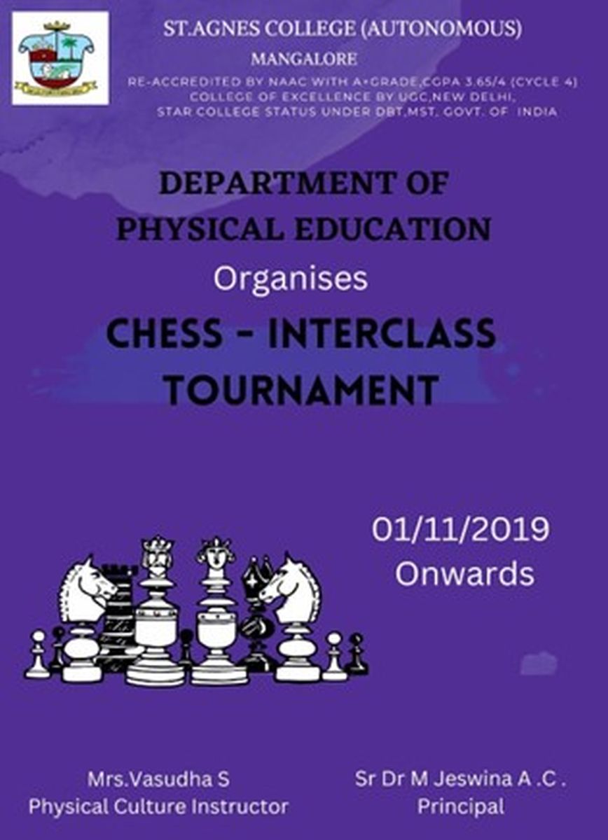 The Department of Physical Education, St Agnes College (Autonomous), Mangaluru conducted an Interclass Chess Tournament on 1 November 2019 with 42 participants, 2 students representing each class.