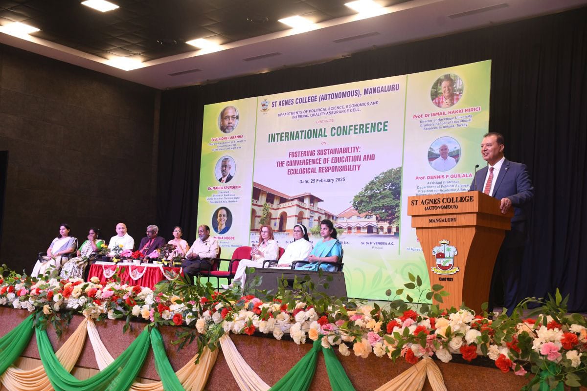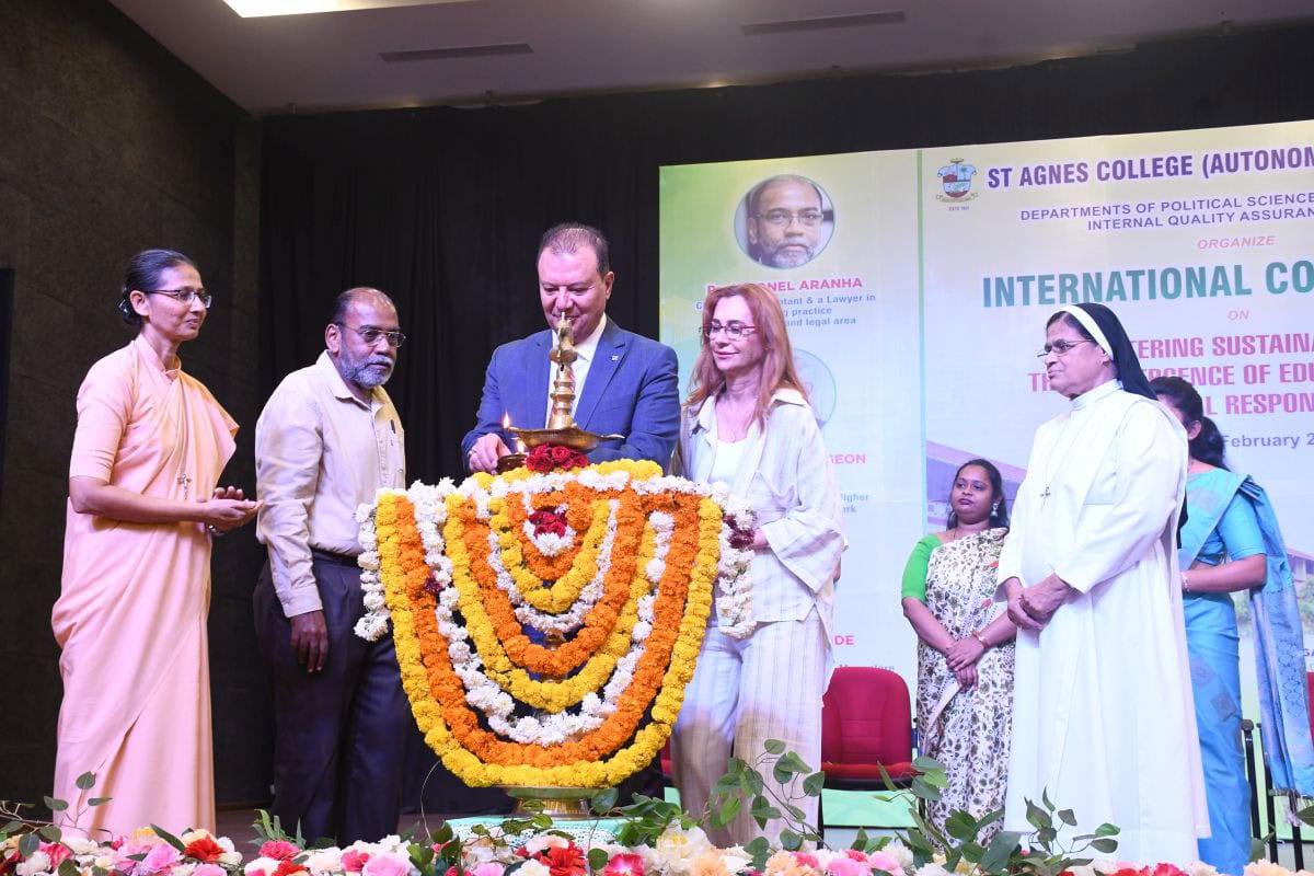 Among the dignitaries were Sr Dr Maria Roopa AC Joint Secretary of St Agnes Institution, Sr. Dr. M. Venissa AC, the Principal and the President of the inaugural; Sr. Dr. Roopa Rodrigues AC, the Vice Principal; Sr. M. Carmelrita AC, the Administrator; Sr. Dr. M. Vinora AC, the PG Coordinator; Dr. Sabina Lobo, the IQAC Coordinator; delegates from various institutions, special invitees, well-wishers, program convenor Mrs. Gayathri BK, Assistant professor of political science and organizing secretary Ms Florine, Assistant Professor of the department of Economics. The others present were Deans, Heads of Departments, faculty members, students, participants, paper presenters for the conference. The valedictory Cheif Guest was Dr Smitha Hegde, Director Research, Centre for Advanced Learning, Mangalore.