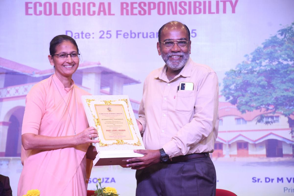 Prof. Lionel Aranha, in his message mentioned that St Agnes College focuses towards empowering women and expressed happiness in the way it is thriving. He emphasized to gainfully be employed and provide sustainable solutions to bring about a change to the world. He mentioned a beautiful quote stating “Live it, leave it, sustain it” which meant to actively work towards a sustainable lifestyle that preserves the environment for future generations.