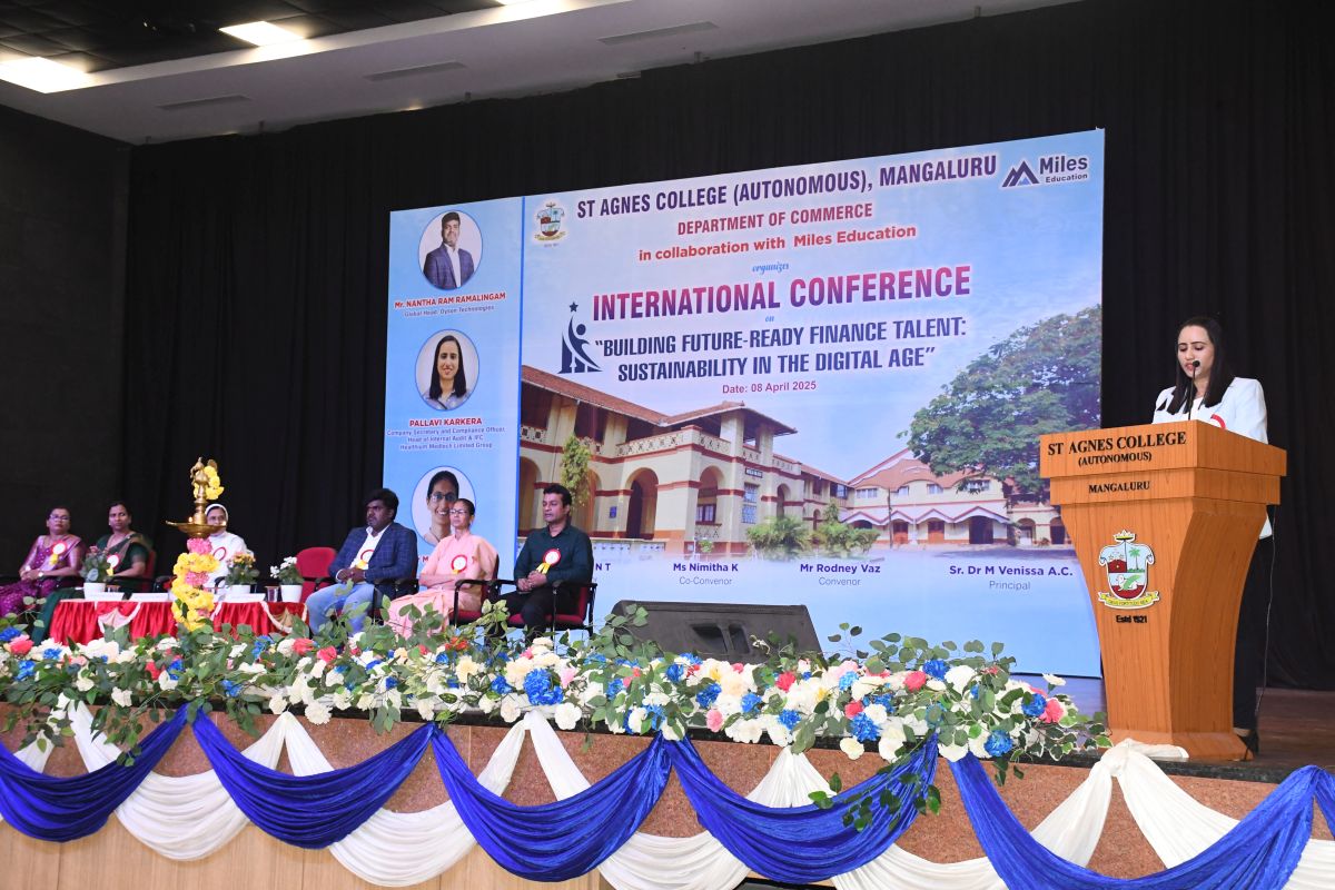 The Guest of Honour, Sr Dr Maria Roopa A.C, Joint Secretary, St Agnes Institutions, Mangaluru, appreciated the initiative of the Commerce Department and encouraged participants to engage actively with the sessions to gain meaningful insights.
