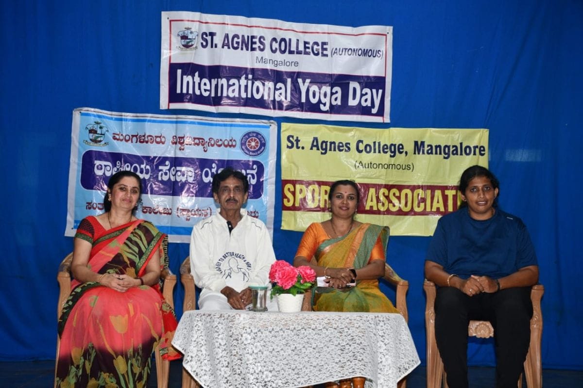 The NSS units in association with Sports association of St Agnes College (Autonomous), Mangaluru observed the International Yoga Day.The resource person for the program was Sri Yogarathna Gopalakrishna Delampady, a professional yoga guru, practitioner and trainer. Sri Gopalkrishna is a district Rajyostava Awardee and a retired Senior Health Inspector. He is the Founder and Coordinator of Delampady Yoga Prathistana, Mangalore.