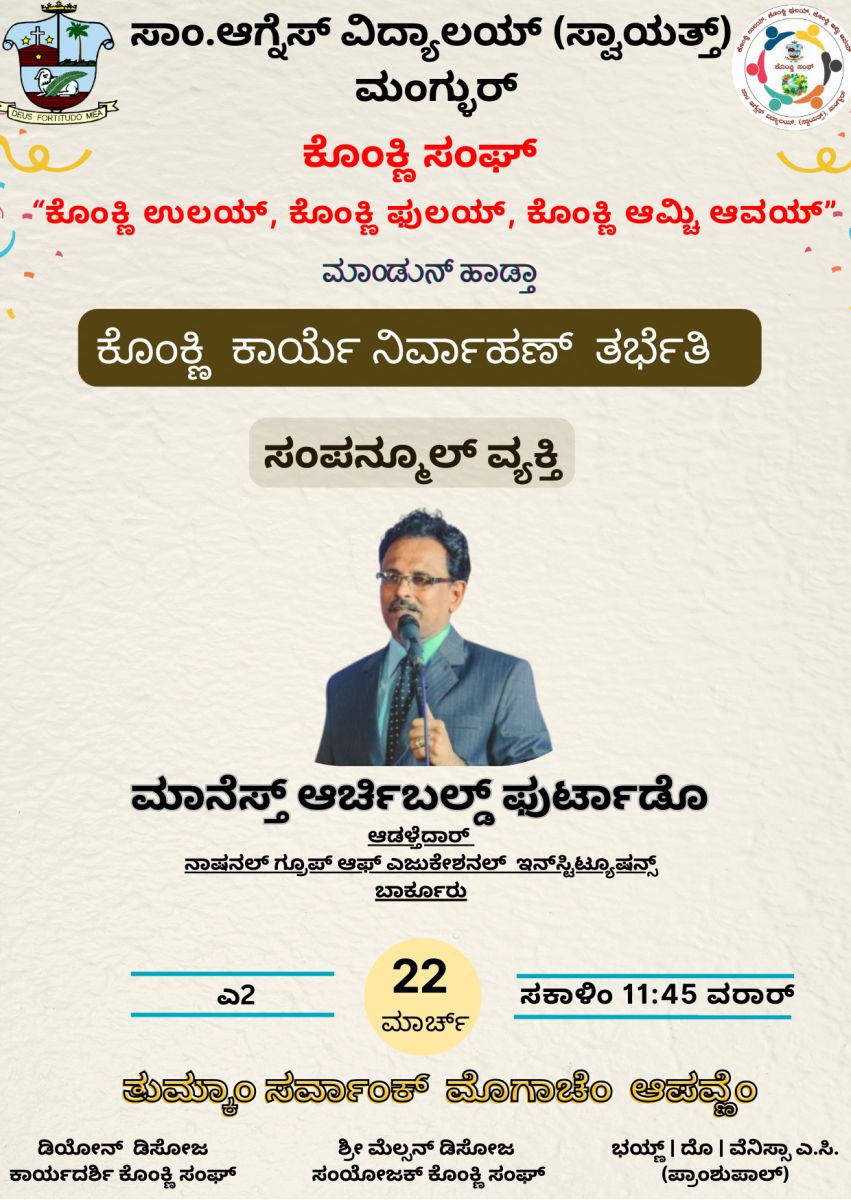 The Konkani Sangh of St. Agnes College, Mangaluru, organized a ‘Konkani Career Guidance Session for Event Presenters’ on March 22, 2025, aimed at guiding students on career opportunities while promoting the Konkani language.