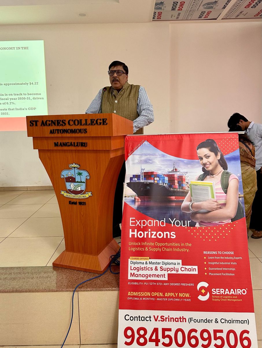 The session was led by Mr. V. Srinath, Managing Director of Seraairo, School of Logistics and Supply Chain Management, along with Mrs. Shanthi. They offered a comprehensive overview of the logistics industry, its various subsectors, and promising career avenues.
