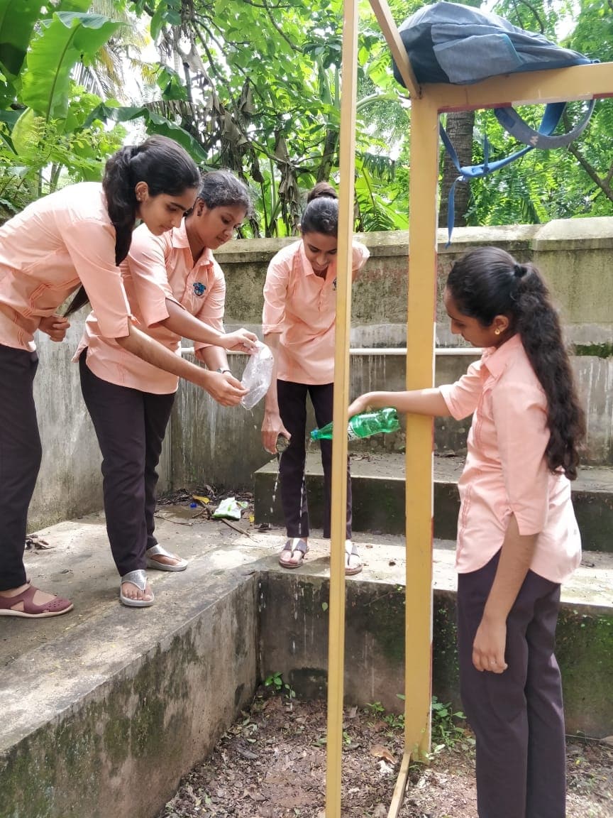As a part of controlling the diseases like Dengue and Malaria, an activity to control/kill the larvae of mosquito vector was conducted on 2nd Aug, 2019 by 15 volunteers of Youth Red Cross. The activity started at 2.15pm and ended by 3.45pm. These volunteers went around the campus in search of any stagnant water sources like buckets, bottles, flower pots, plastic containers, tins etc. and discarded all the materials with water for avoiding breeding of mosquito vectors. They disposed all those resources they could find within the campus which would otherwise be a source for the survival of mosquito larvae. They could find in one place the stagnant water with mosquito larvae within a plastic bottle and discarded to kill the larvae.