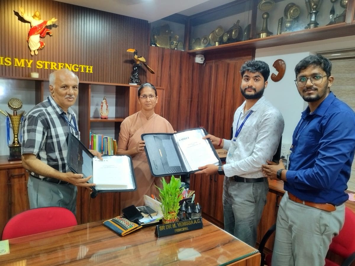 The MOU was signed by Sr Dr M Venissa AC, Principal, St Agnes College (Autonomous), and Mr. Guruprasad Shettigar, Jr. Regional Manager/Center Manager from AISECT Limited. The signing was witnessed by Mr. Nelson D’Mello, Placement Officer; and Mr. Srijesh from AISECT Limited.