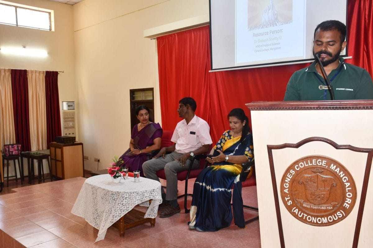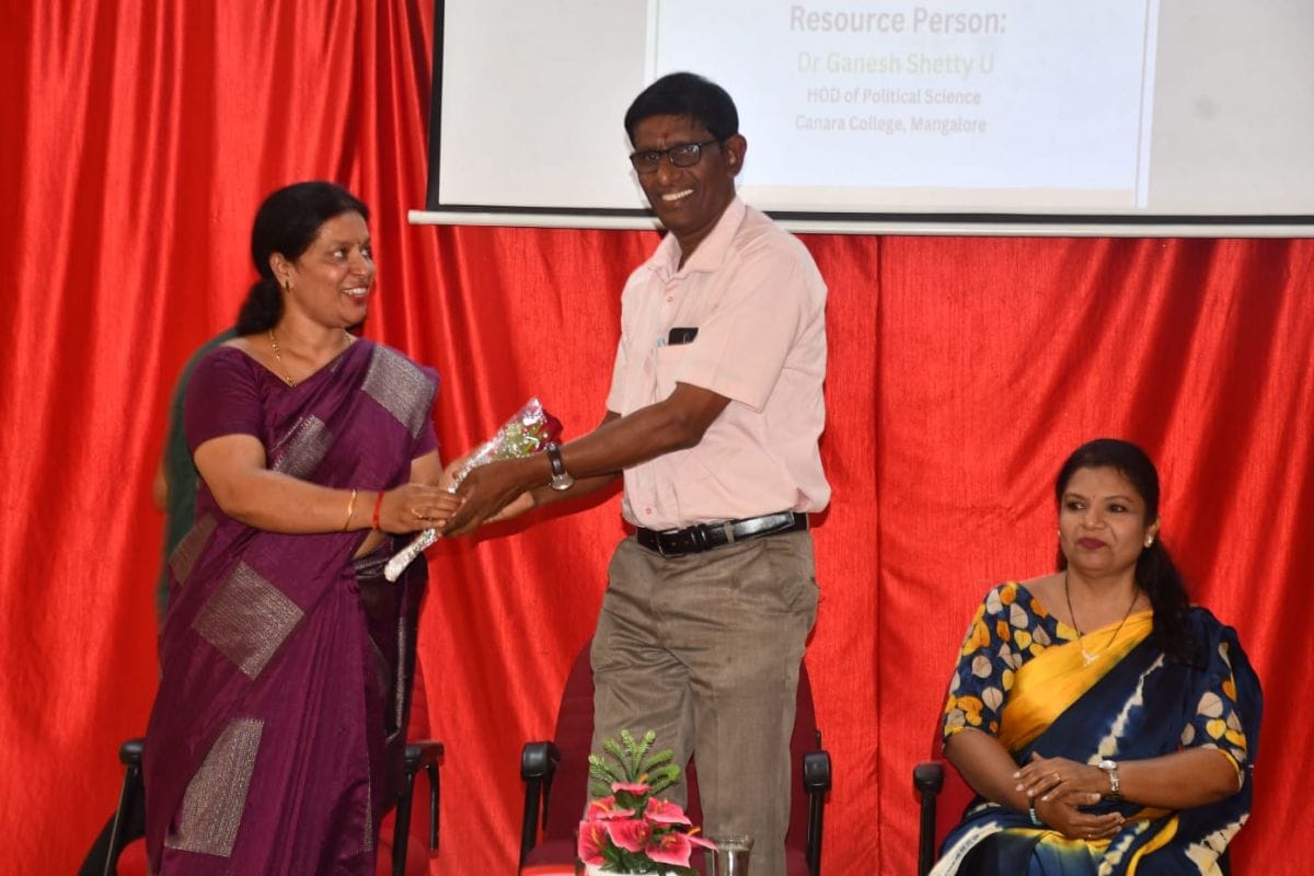 Dr Ganesh Shetty U., HOD of Political Science, Canara College, Mangaluru, was the Resource person, who briefed on the efficacy of observing the National Voters Day and stressed the need for the Youth to be active participants in the Electoral process and cast their votes to the representatives wisely.