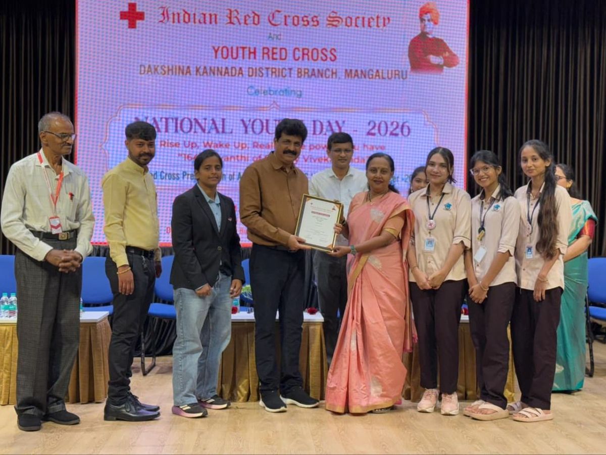 On this auspicious occasion, St. Agnes College (Autonomous), Mangaluru, was honoured with the Third Best Performing Youth Red Cross (YRC) Unit Award – 2025, in recognition of its consistent and impactful service-oriented activities throughout the academic year.