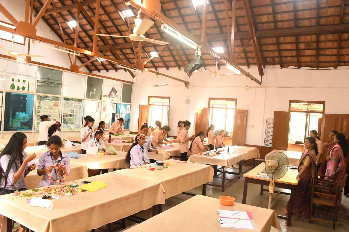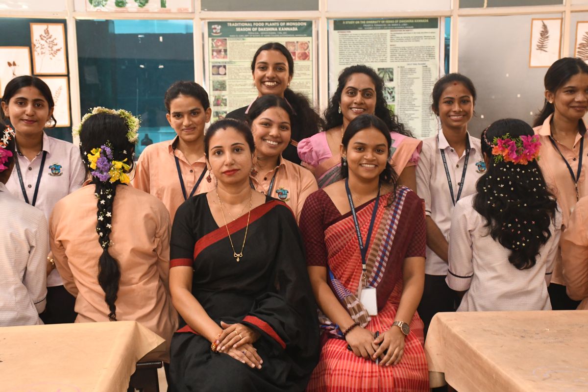 As part of the National Science Day celebrations, the “Nature’s Crown” event was organized to highlight the beauty of nature through floral hair decoration. Held on 28th February 2025 from Department of Zoology at the Botany Lab, the event witnessed with enthusiastic participation from 13 teams (26 students) who showcased their creativity by designing stunning floral hairstyles. The event aimed to blend science with art, emphasizing the importance of natural elements in everyday life. Participants were given one hour to create their designs, using only real flowers, making the competition both challenging and exciting. The participants displayed remarkable innovation and artistic expression, crafting intricate and aesthetically pleasing floral arrangements. Some teams focused on traditional floral crowns, while others experimented with modern and abstract designs, incorporating diverse textures and colors. The competition not only tested their creativity but also their precision and teamwork. The use of fresh flowers added a natural and refreshing appeal to the event, making it a visual delight. Each team demonstrated unique ideas, turning simple flowers into elegant and stylish hair decorations. The competition was judged by Mrs. Divya Ma’am and Ms. Merin Ma’am, who carefully evaluated the designs based on creativity, neatness, and presentation. Their expertise in aesthetics and design helped in selecting the best works among the participants. The event was successfully coordinated by Dr. Navya H (Staff Coordinator) and Ms. Sunena Subbanna Rai & Ms. Sanjana S Shetty (Student Coordinators), ensuring its smooth execution. “Nature’s Crown” was a grand success, offering students a platform to showcase their talent while appreciating the scientific and artistic significance of nature
