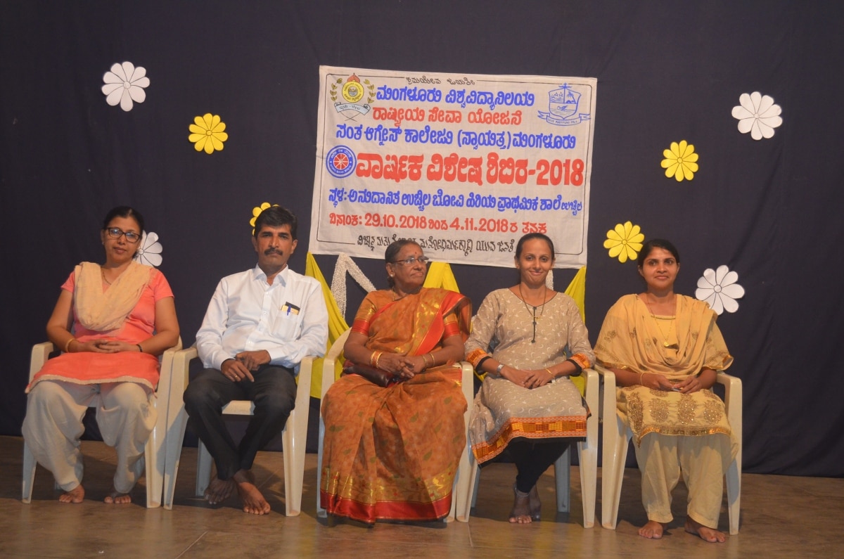 Mrs Helen Serrao and Mrs Anitha S, NSS Programme Officers, Mr Derick Dsouza and Ms Seema, Assistant NSS Programme Officers, Ms Nerissa Noronha and Ms Melrida Moras, Volunteers Leaders are responsible for steer heading the camp.